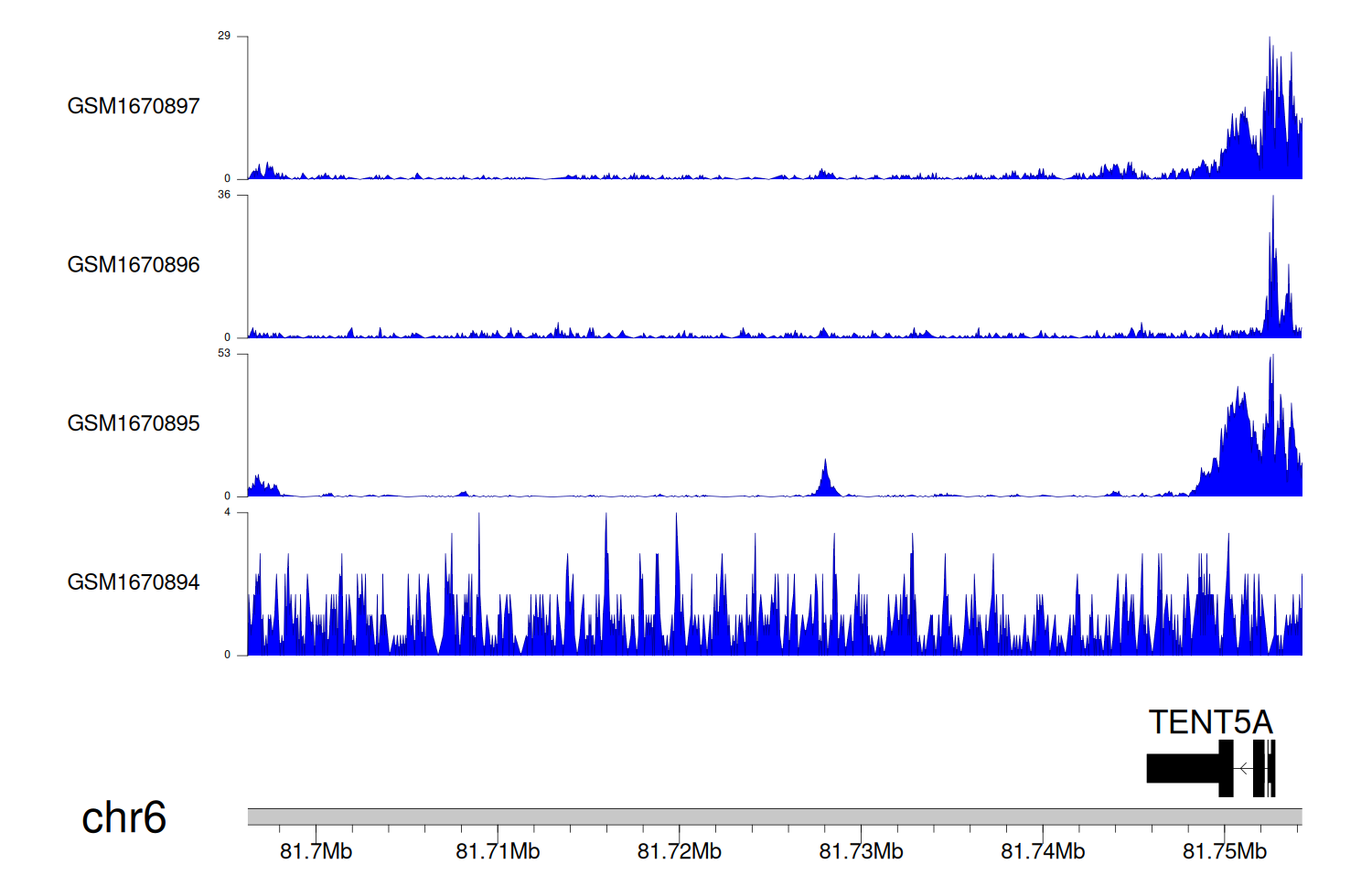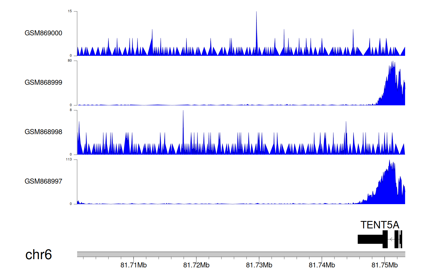 > Dataset: GSE68402 - TENT5A peak across samples