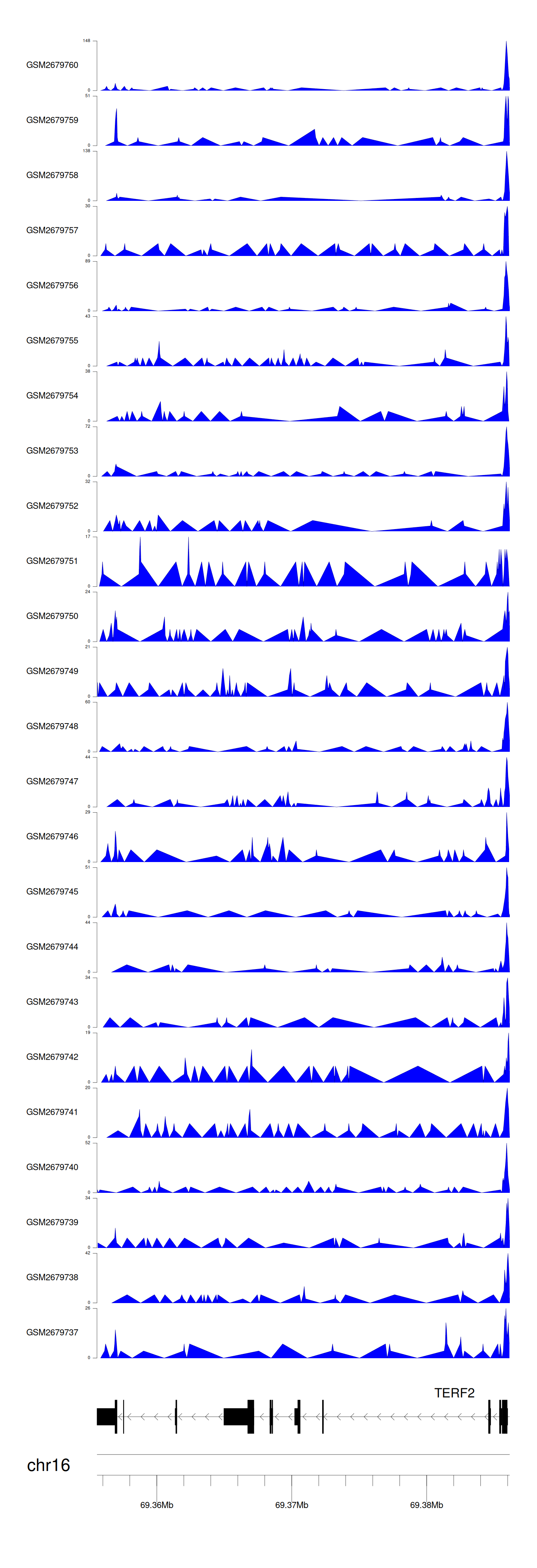 Summary This gene encodes a telomere specific protein, TERF2, which is a component of the telomere nucleoprotein complex. This protein is present at telomeres in metaphase of the cell cycle, is a second negative regulator of telomere length and plays a key role in the protective activity of telomeres. While having similar telomere binding activity and domain organization, TERF2 differs from TERF1 in that its N terminus is basic rather than acidic. [provided by RefSeq, Jul 2008]