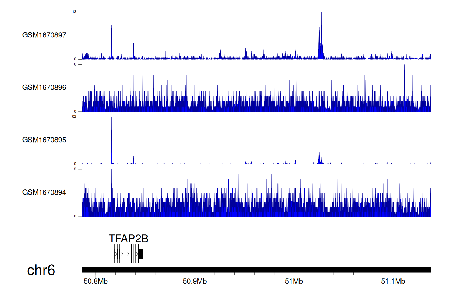 > Dataset: GSE68402 - TFAP2B peak across samples