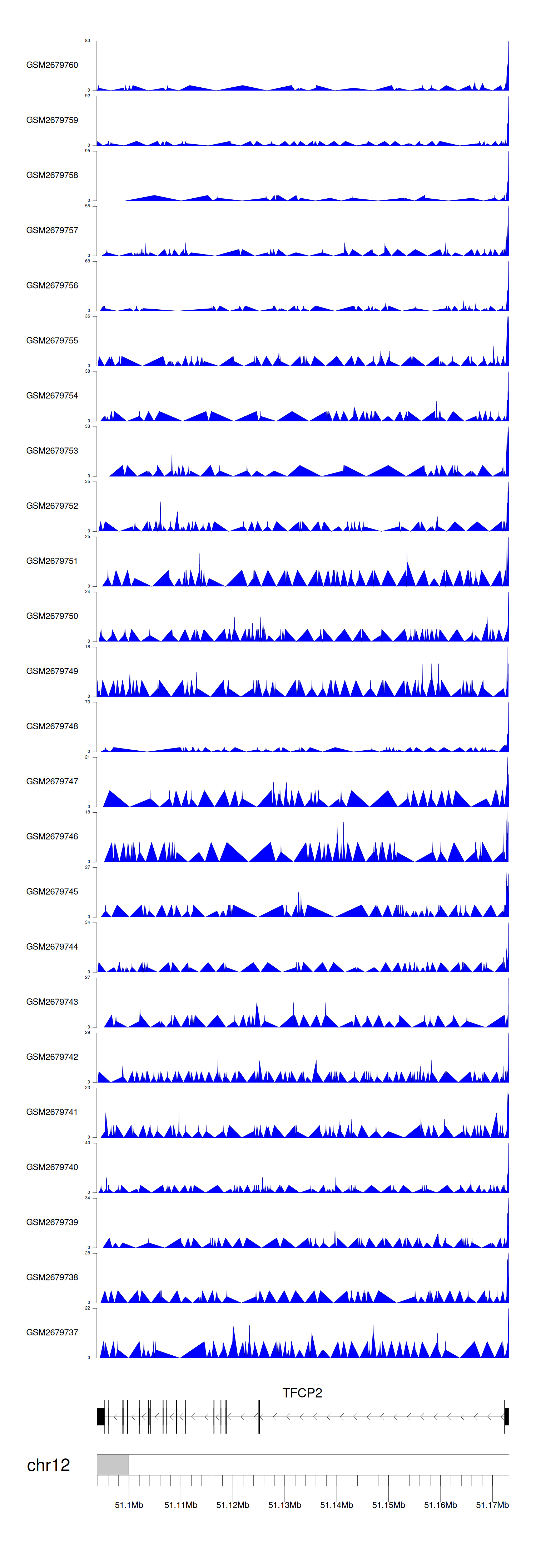 > Dataset: GSE100376 - TFCP2 peak across samples