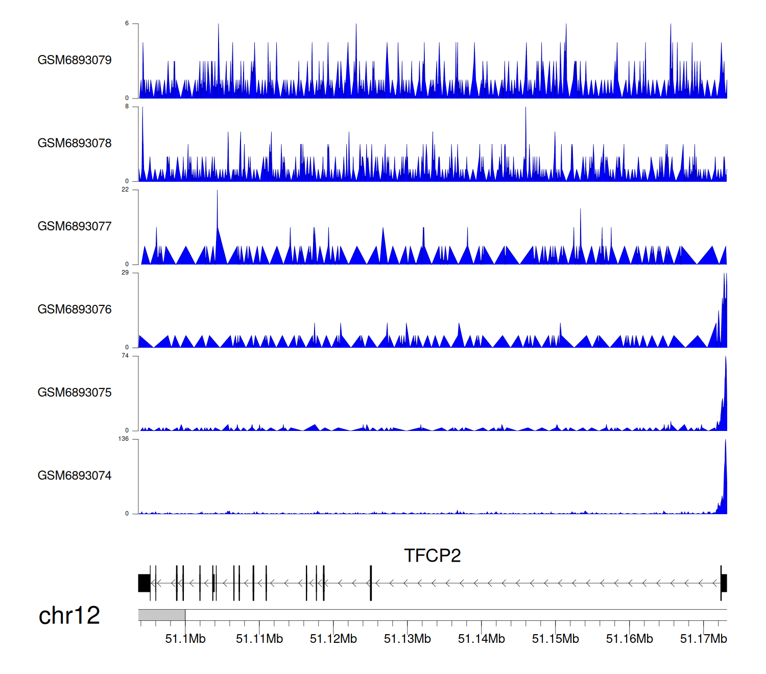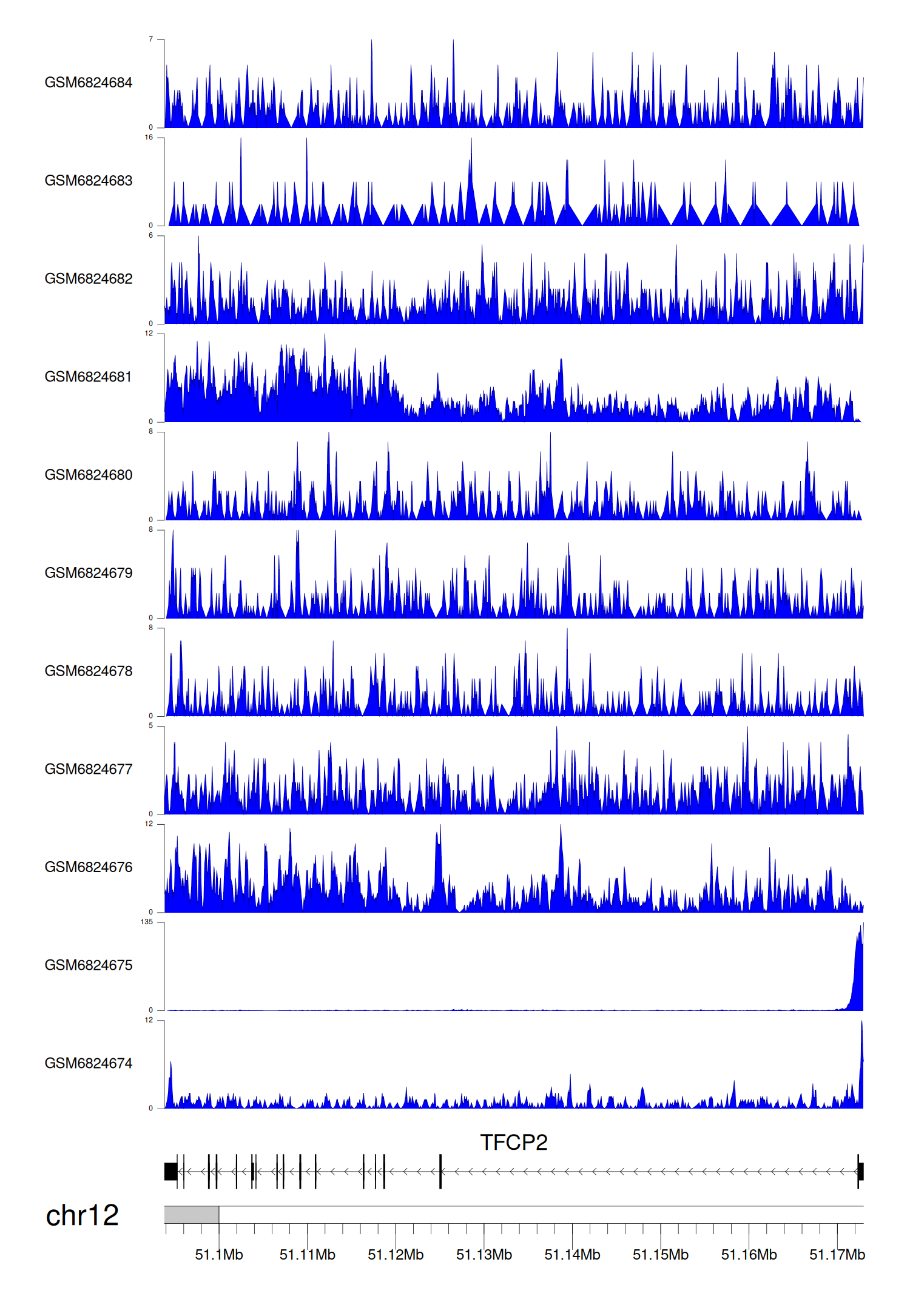 > Dataset: GSE165703 - TFCP2 peak across samples