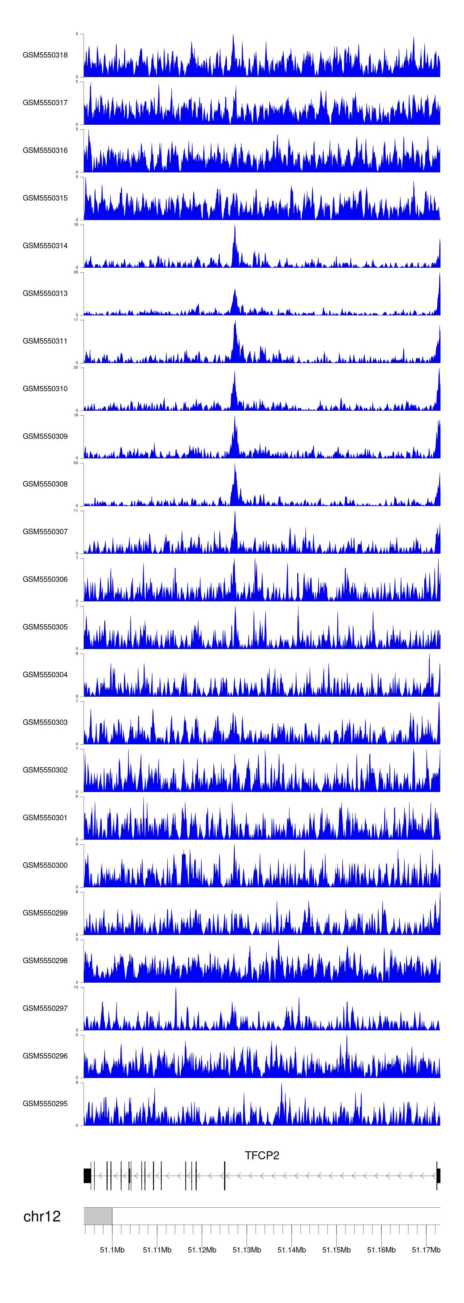 > Dataset: GSE183048 - TFCP2 peak across samples
