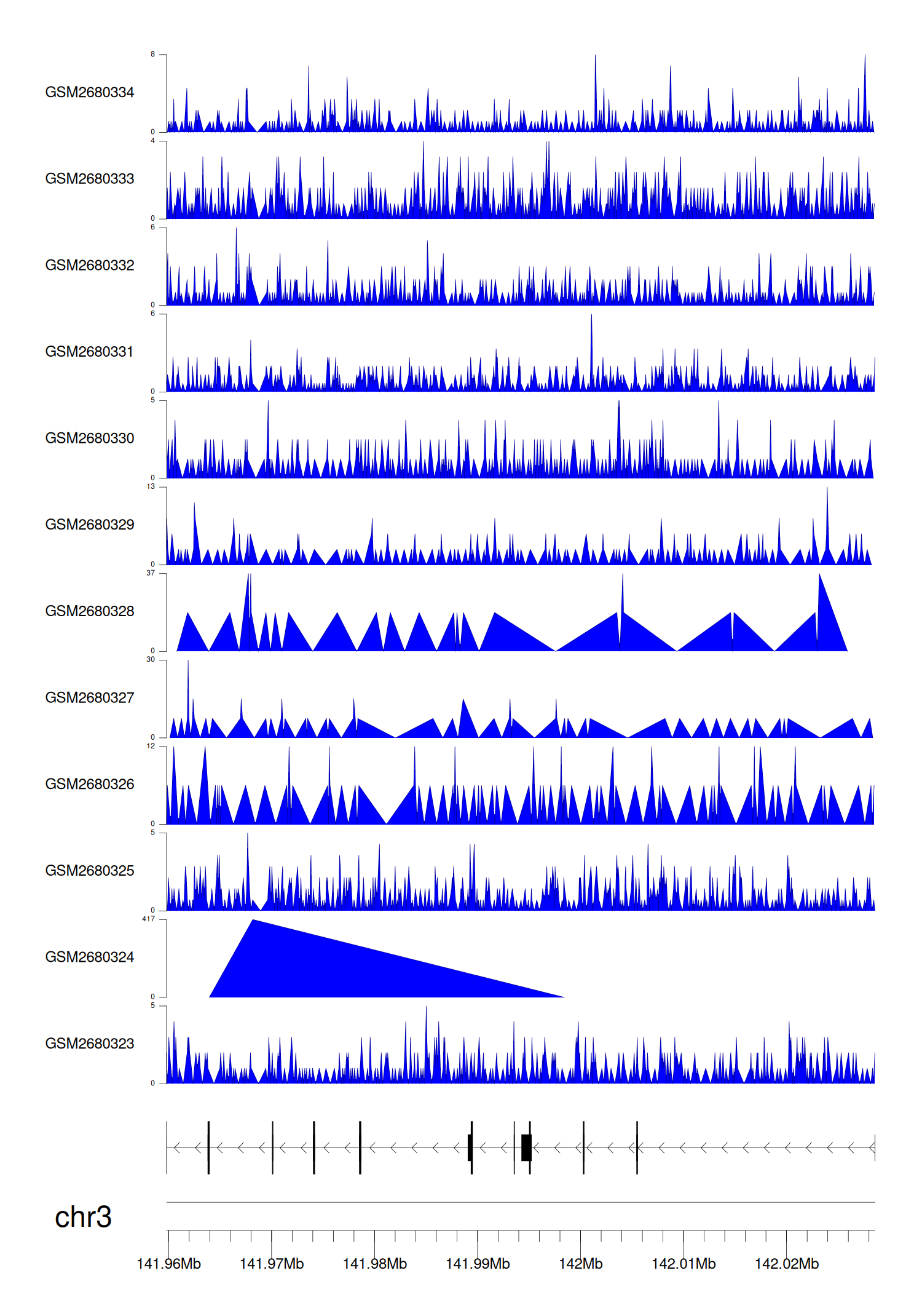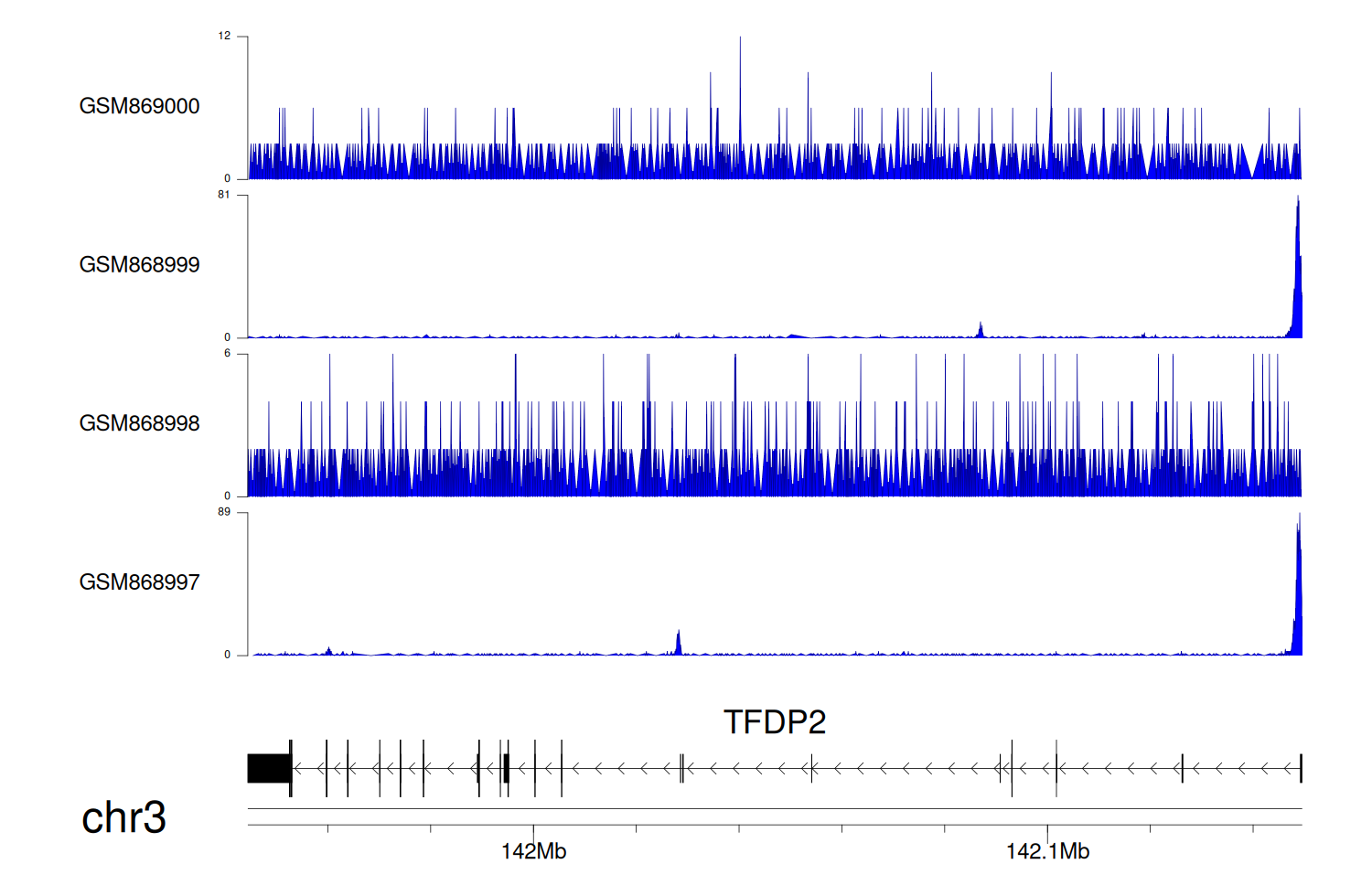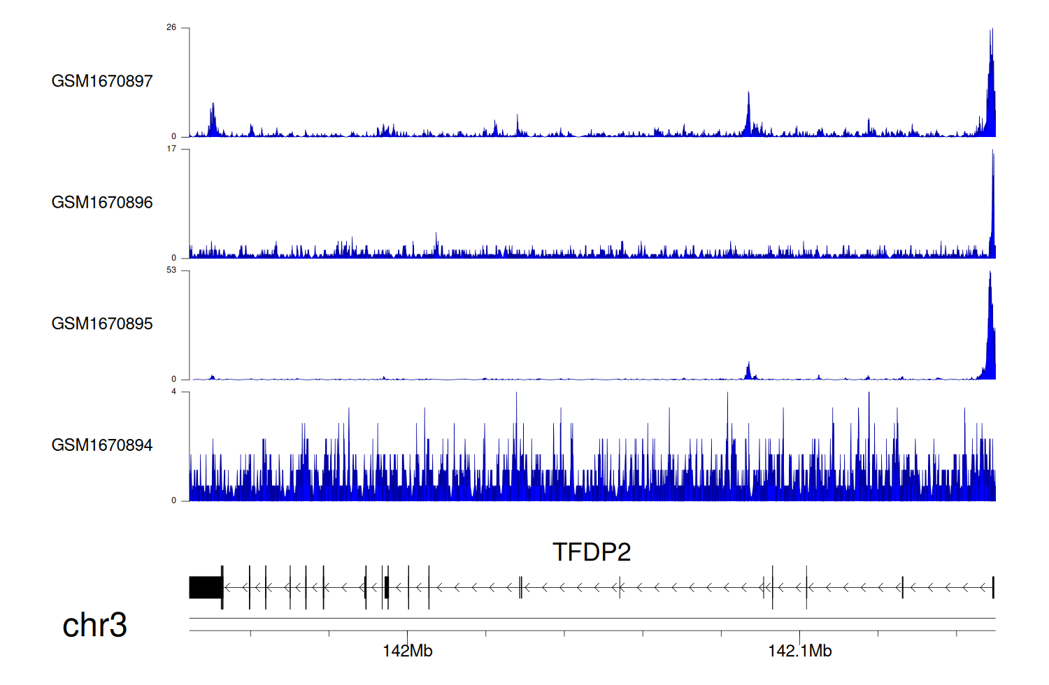 > Dataset: GSE68402 - TFDP2 peak across samples