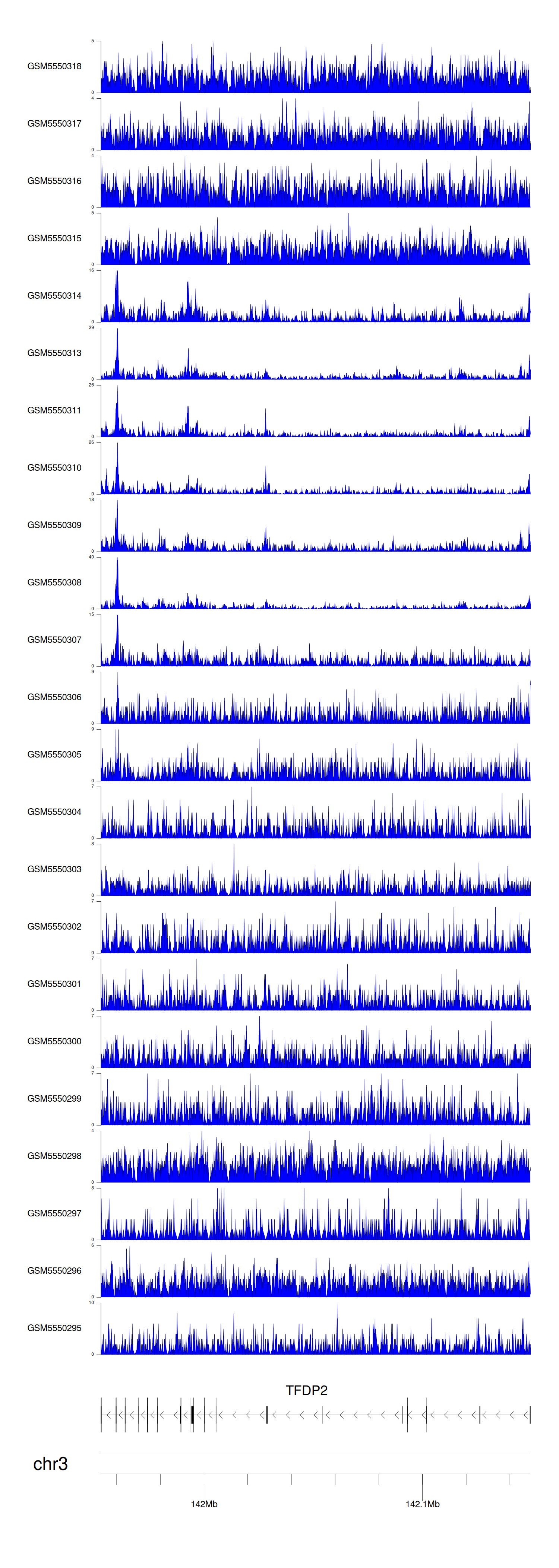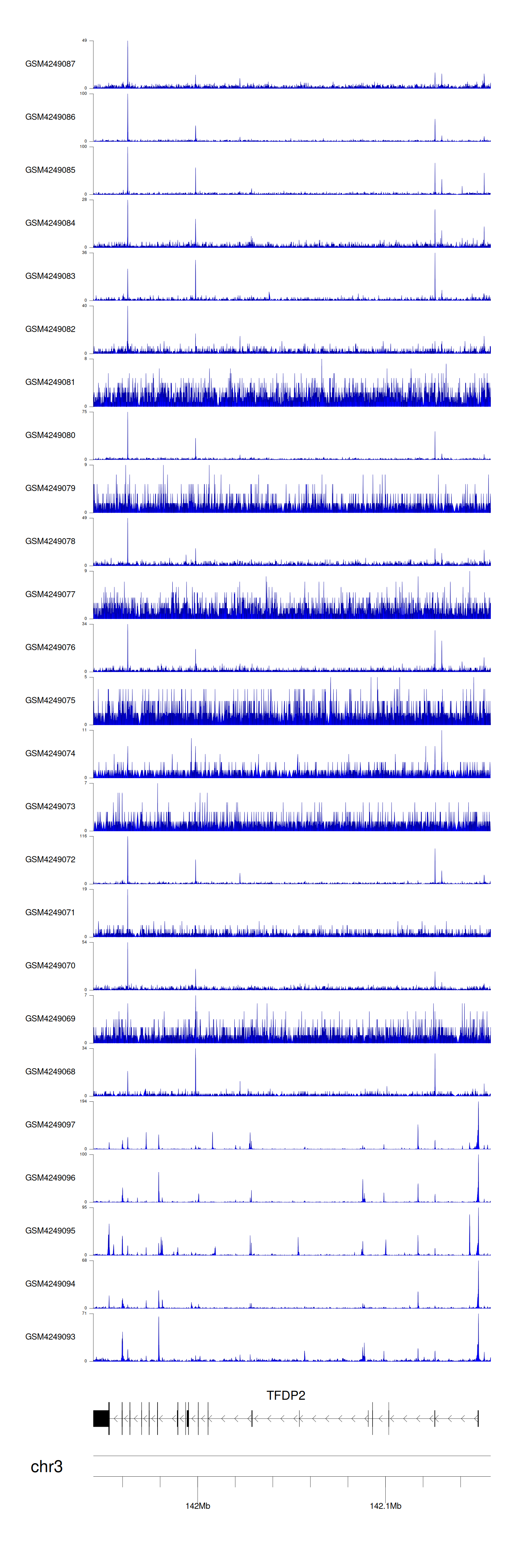 > Dataset: GSE143026 - TFDP2 peak across samples