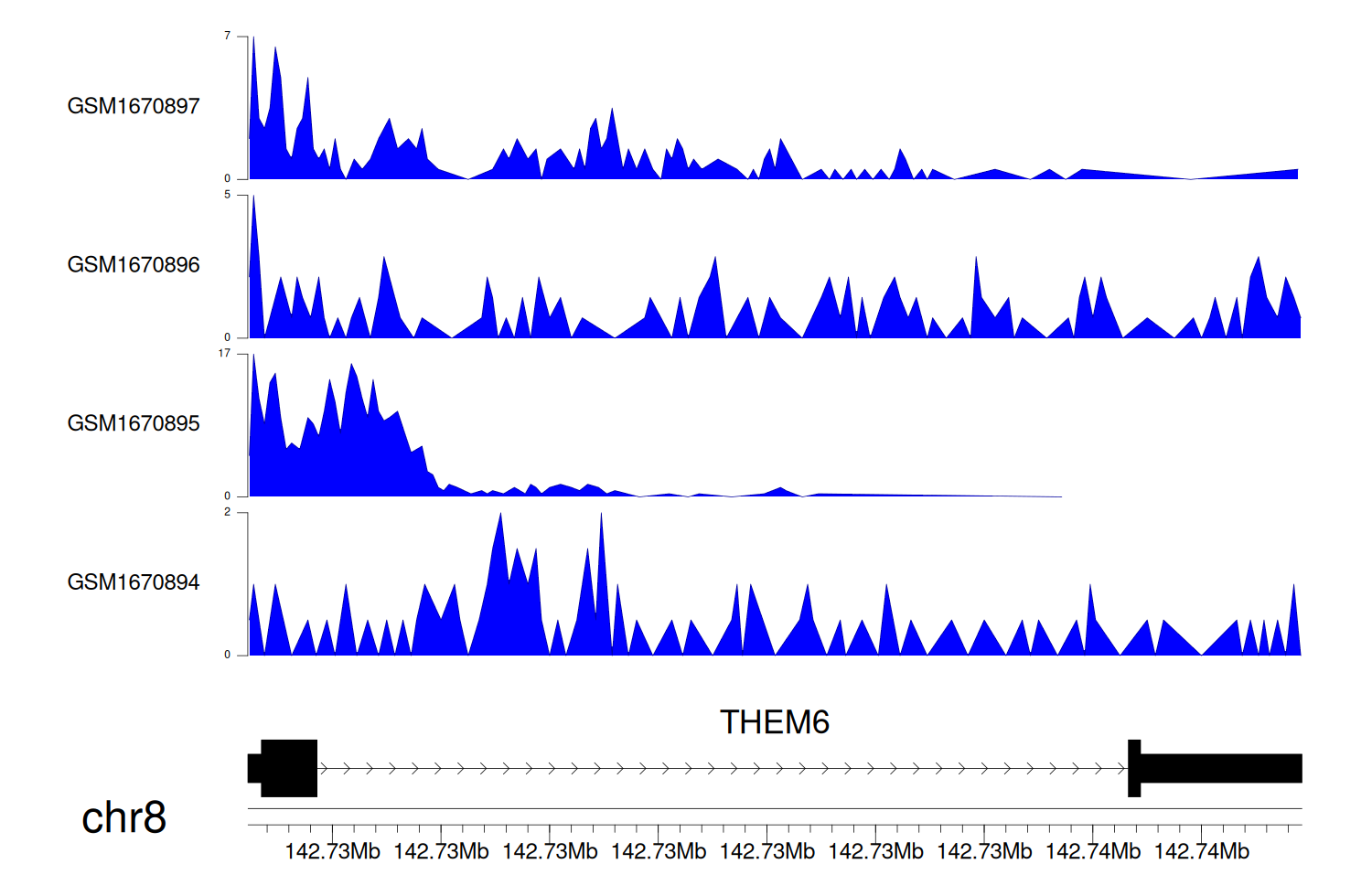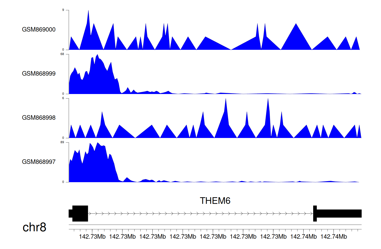 > Dataset: GSE68402 - THEM6 peak across samples