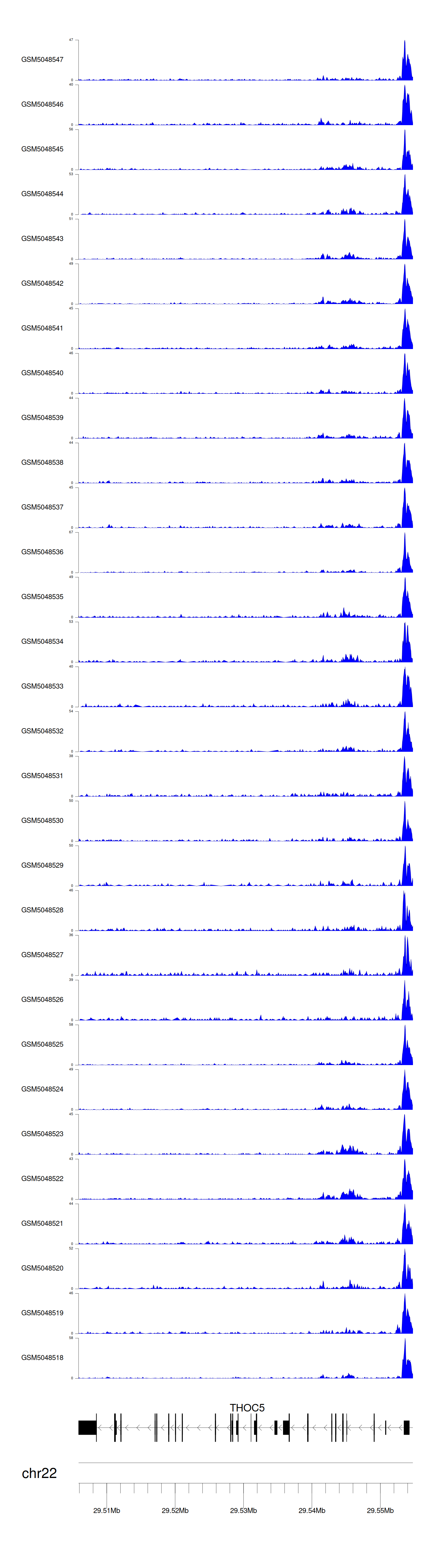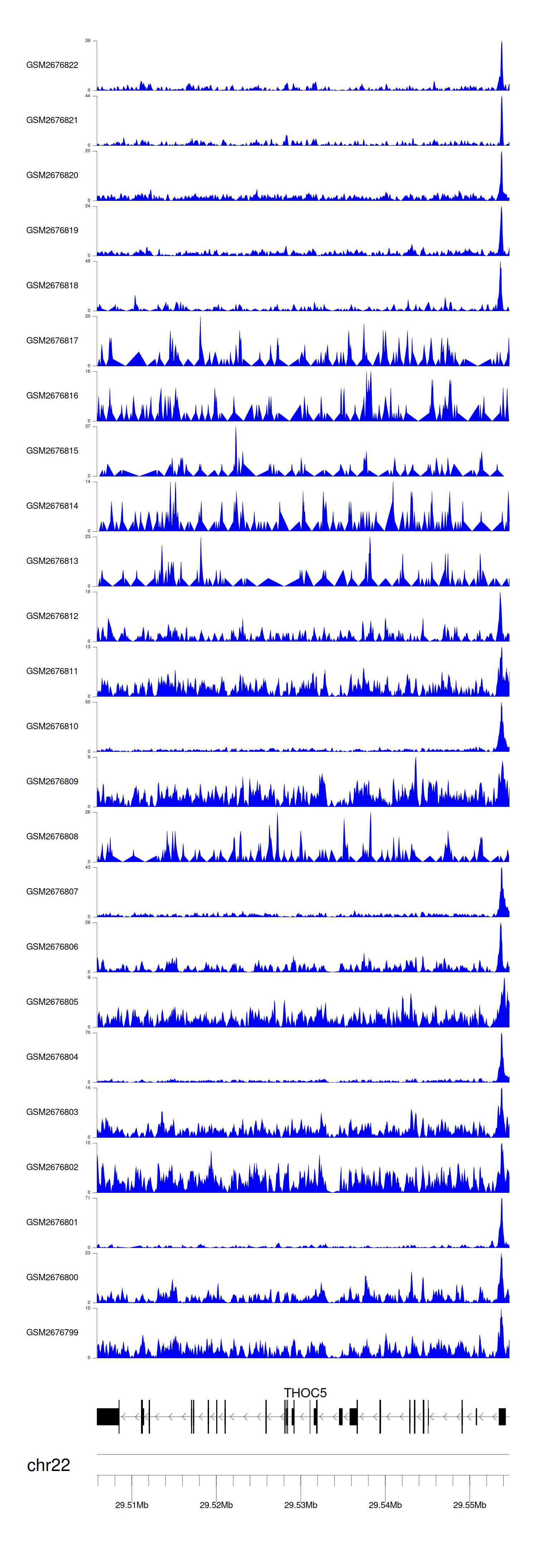 > Dataset: GSE165703 - THOC5 peak across samples