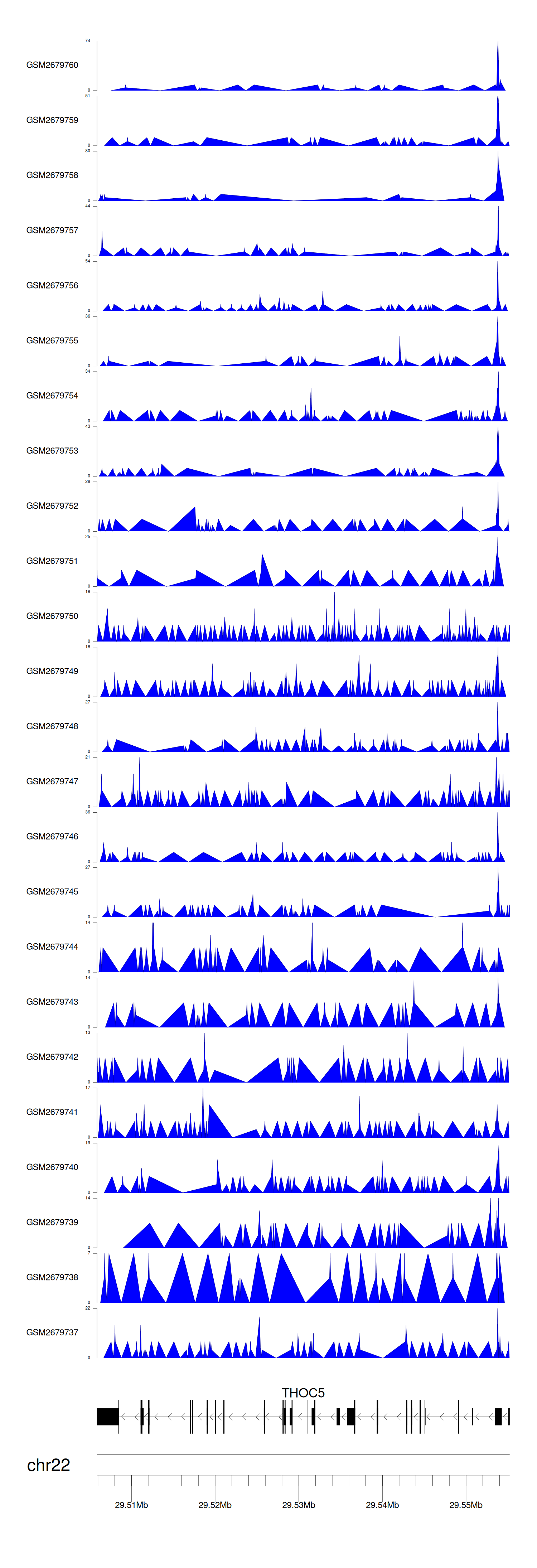 > Dataset: GSE30738 - THOC5 peak across samples