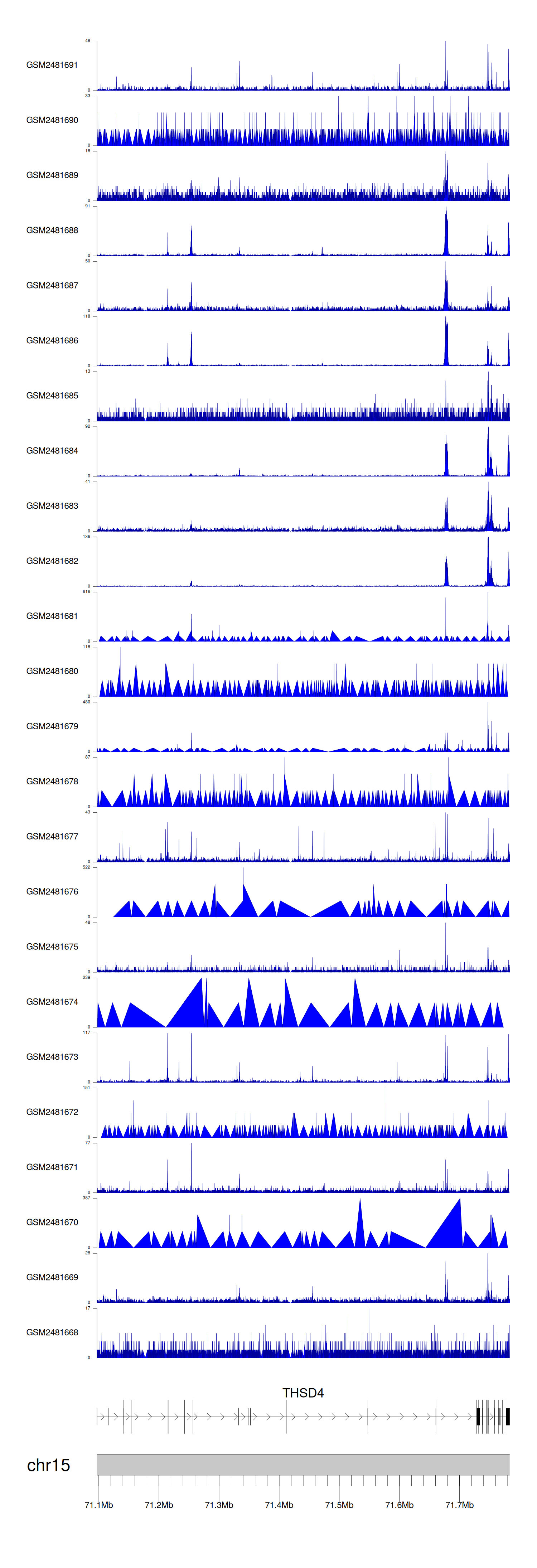 > Dataset: GSE94732 - THSD4 peak across samples