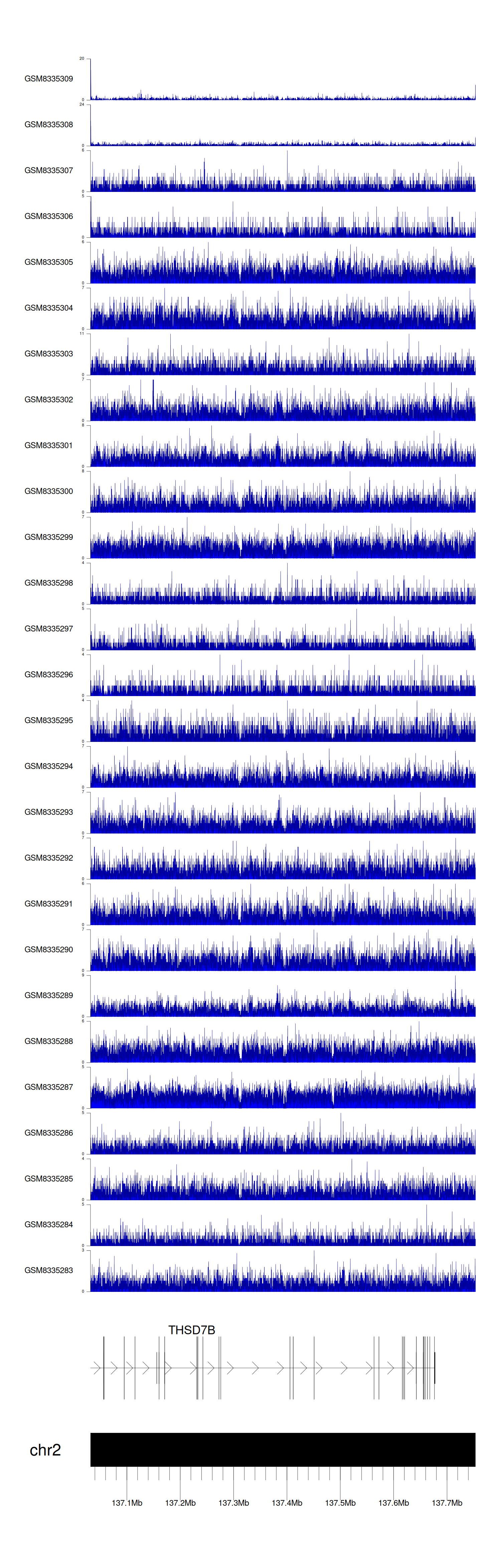 > Dataset: GSE270130 - THSD7B peak across samples