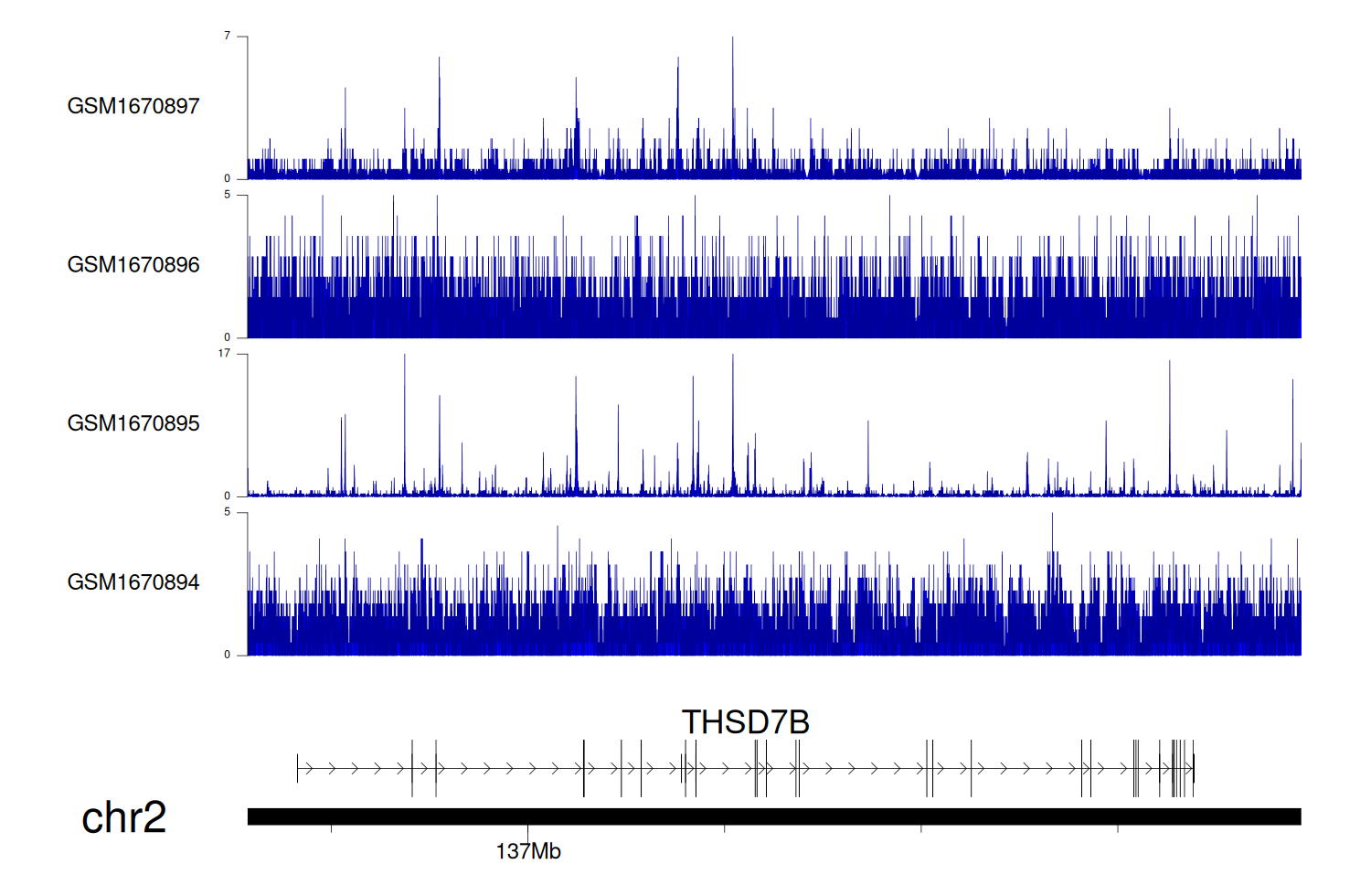 > Dataset: GSE68402 - THSD7B peak across samples