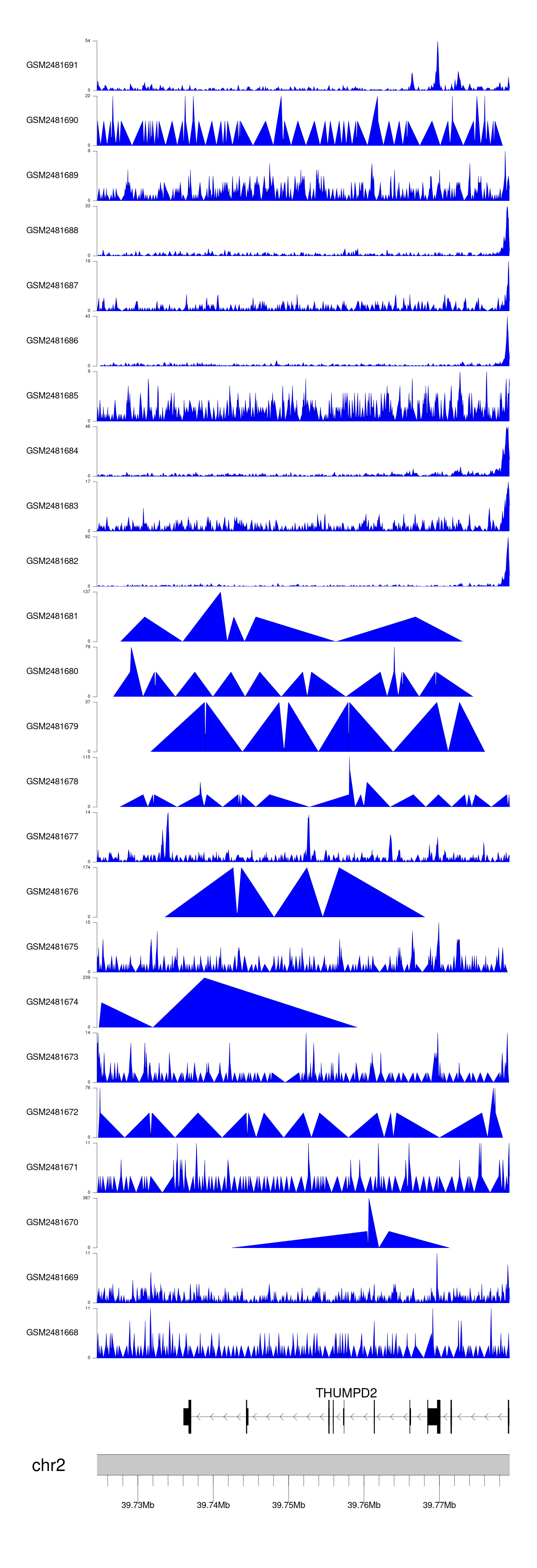 > Dataset: GSE94732 - THUMPD2 peak across samples