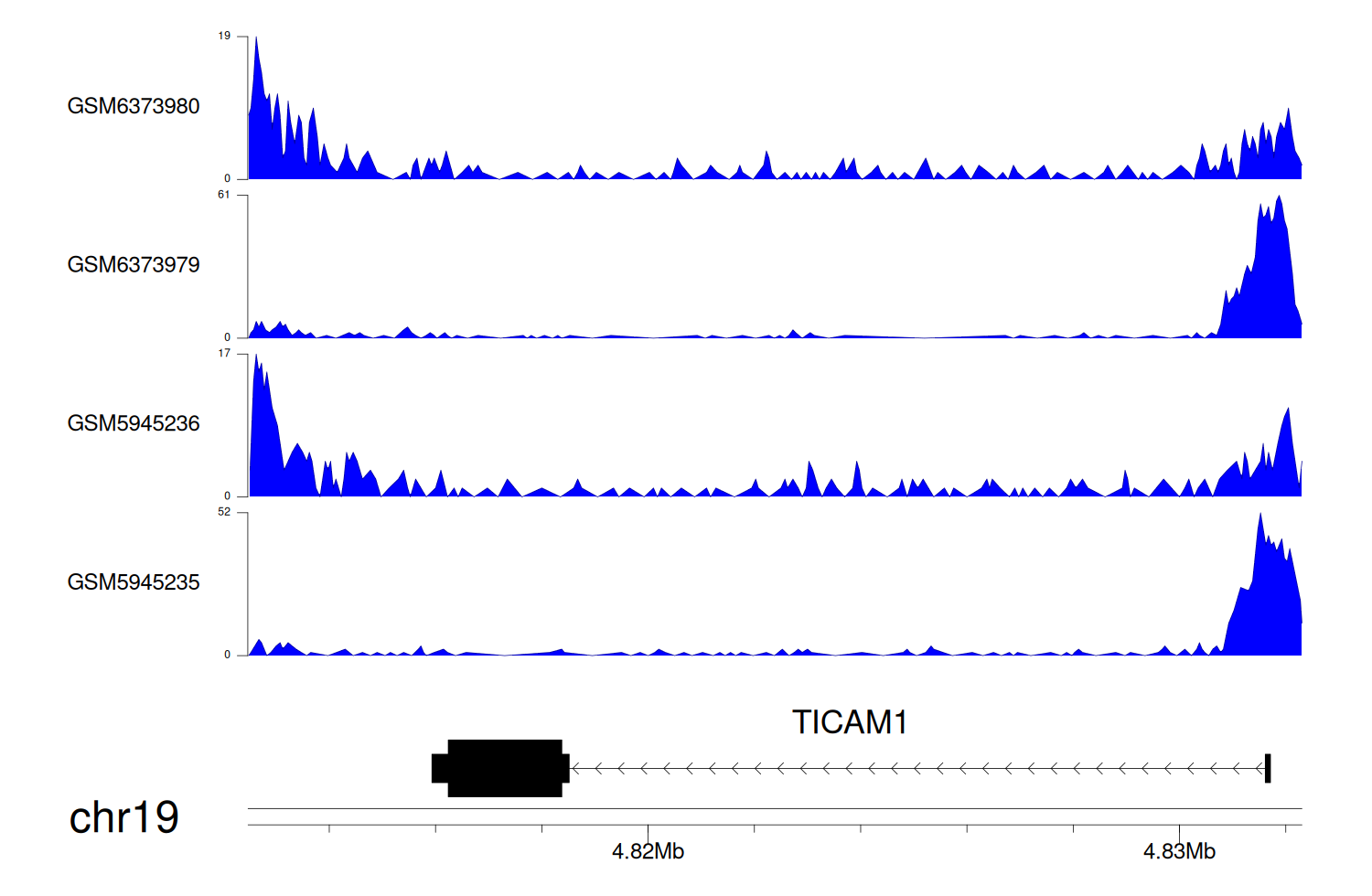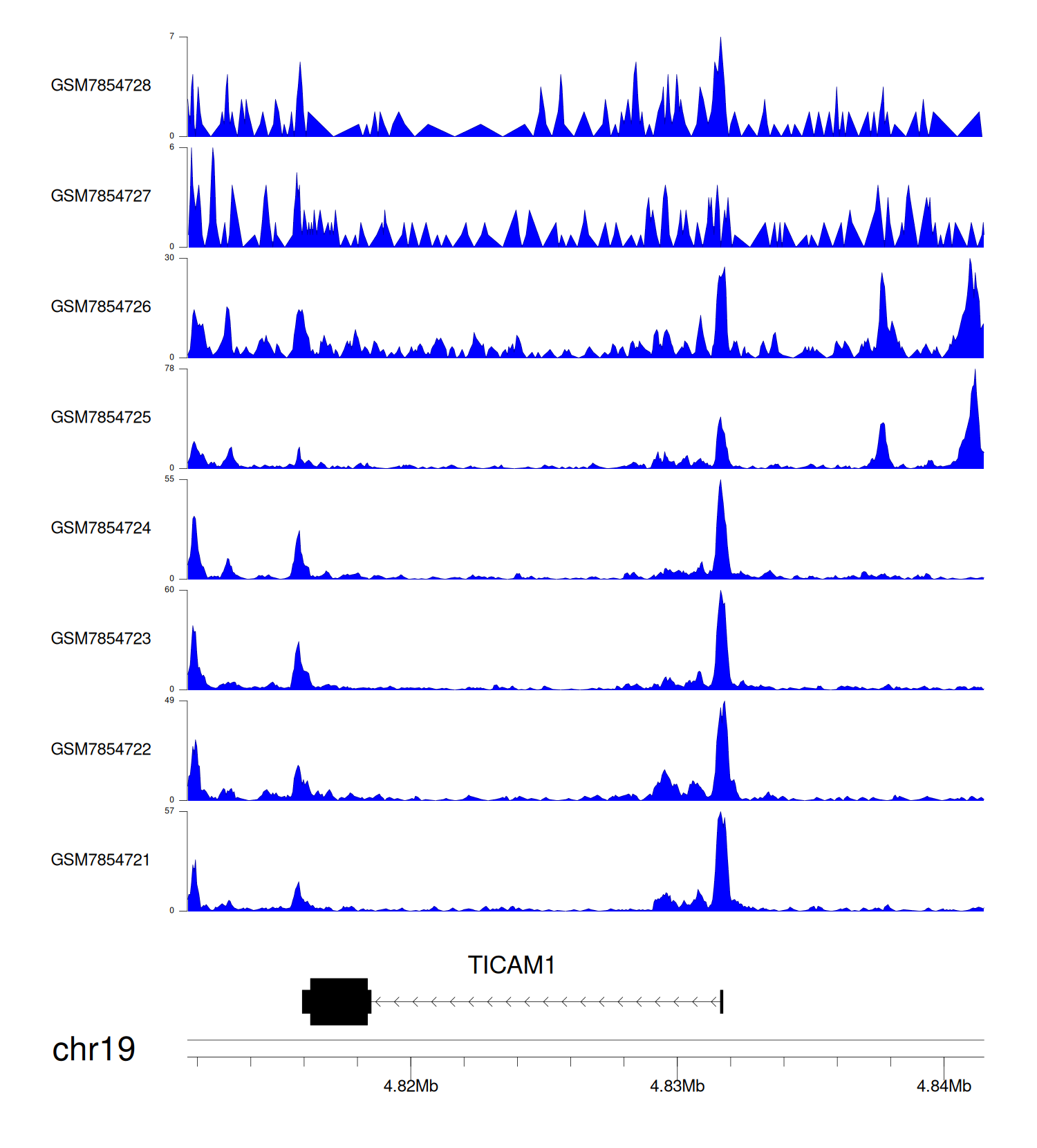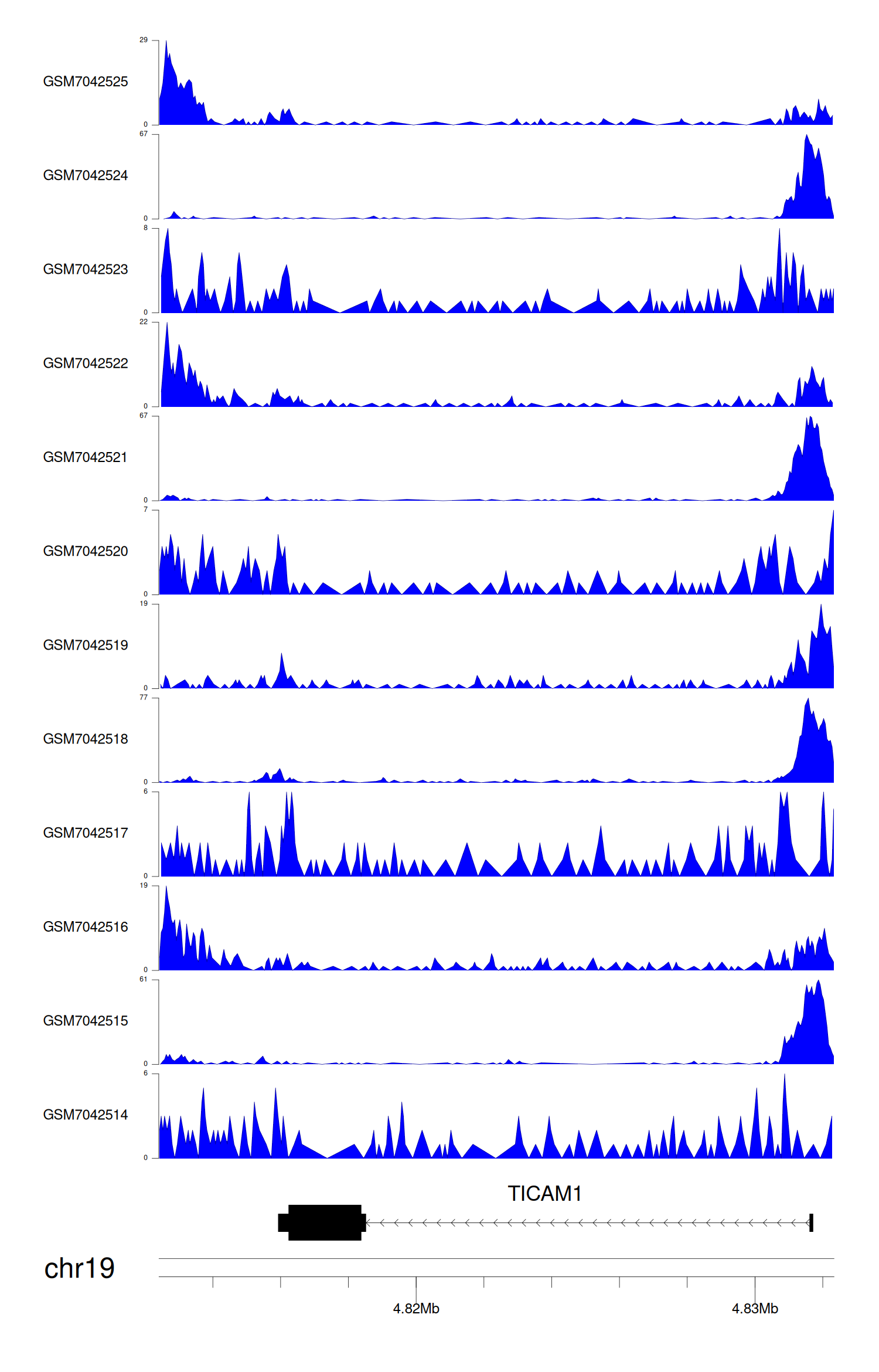> Dataset: GSE246060 - TICAM1 peak across samples