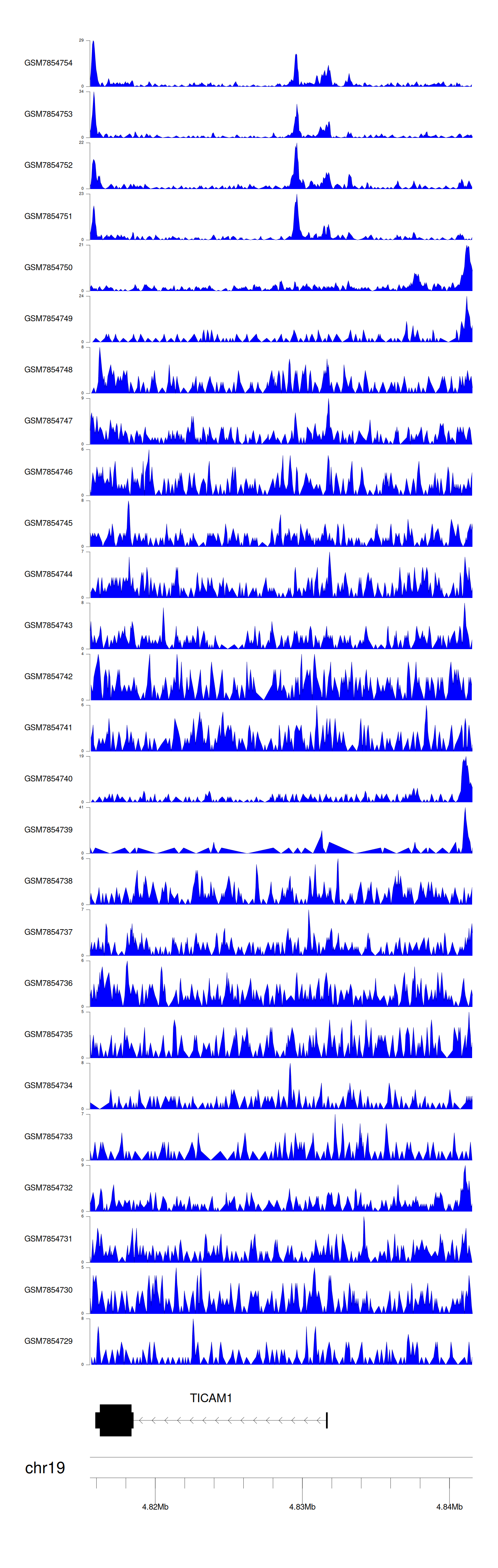 > Dataset: GSE198334 - TICAM1 peak across samples