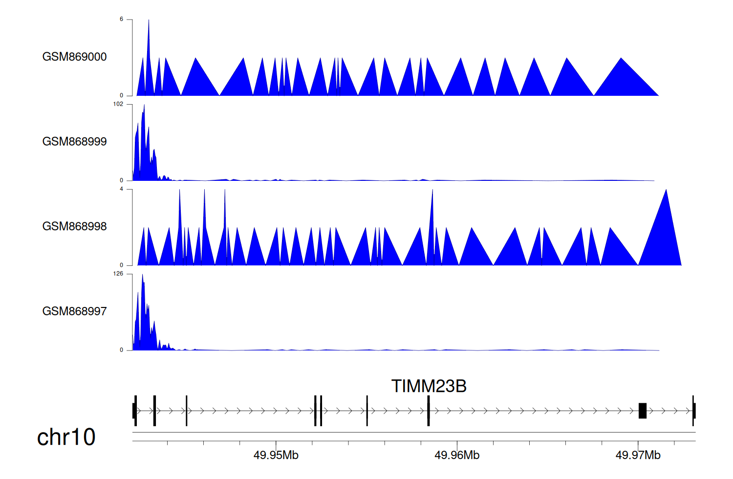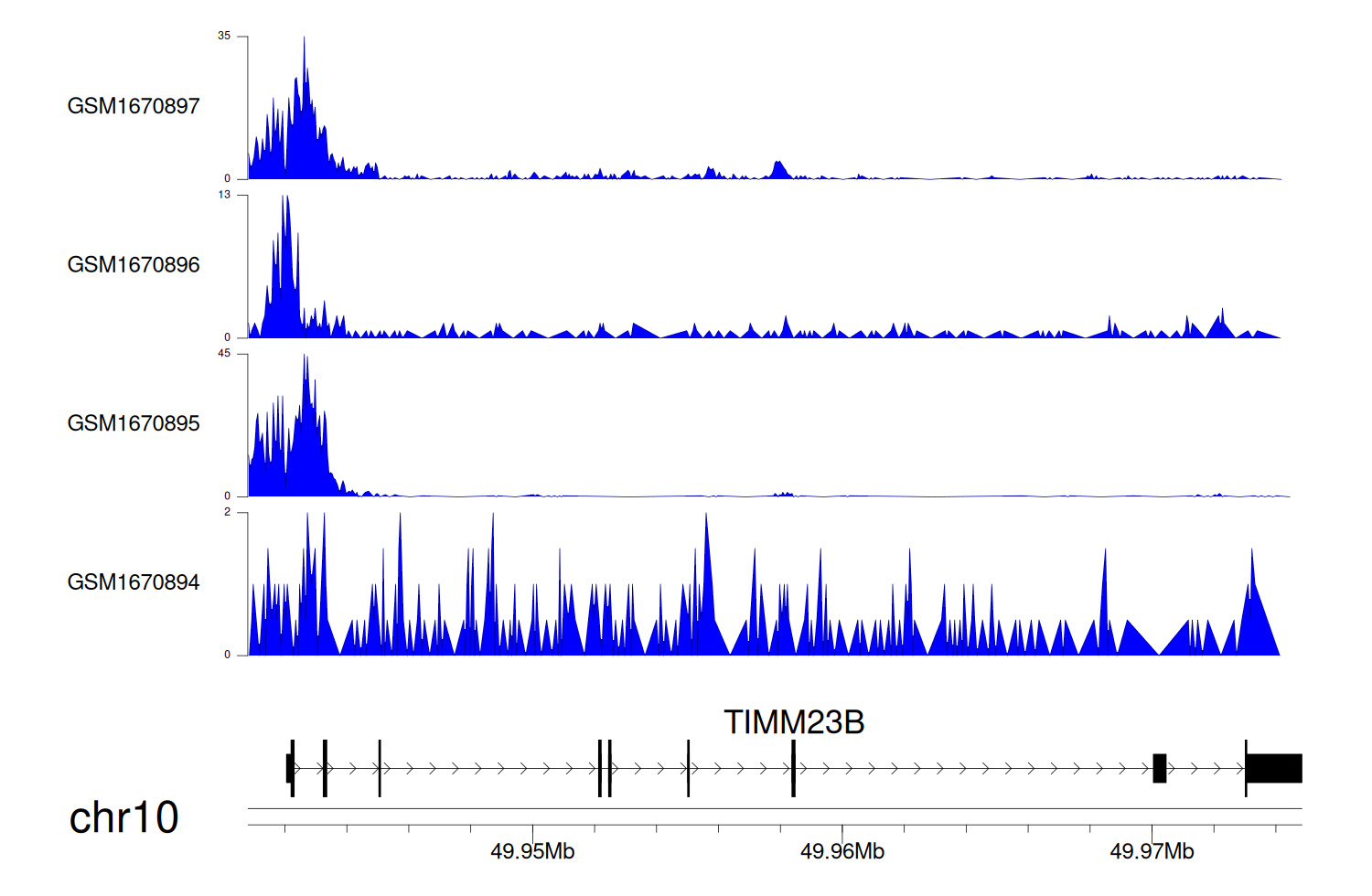 > Dataset: GSE68402 - TIMM23B peak across samples