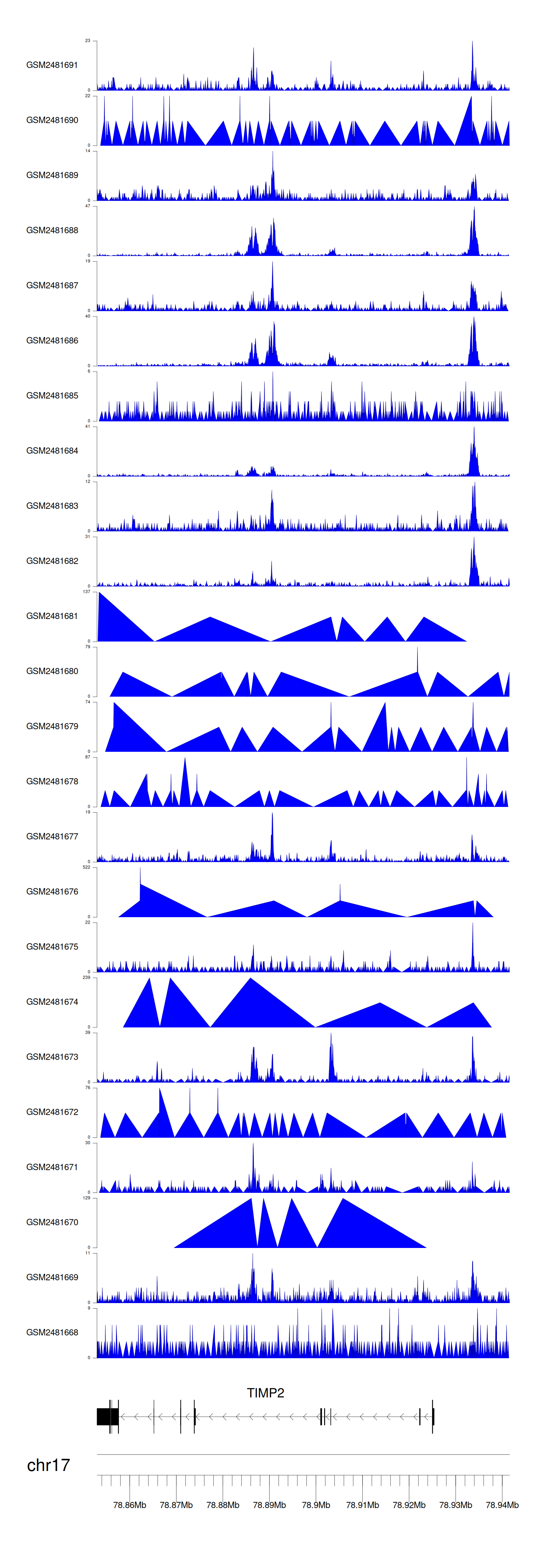 > Dataset: GSE94732 - TIMP2 peak across samples