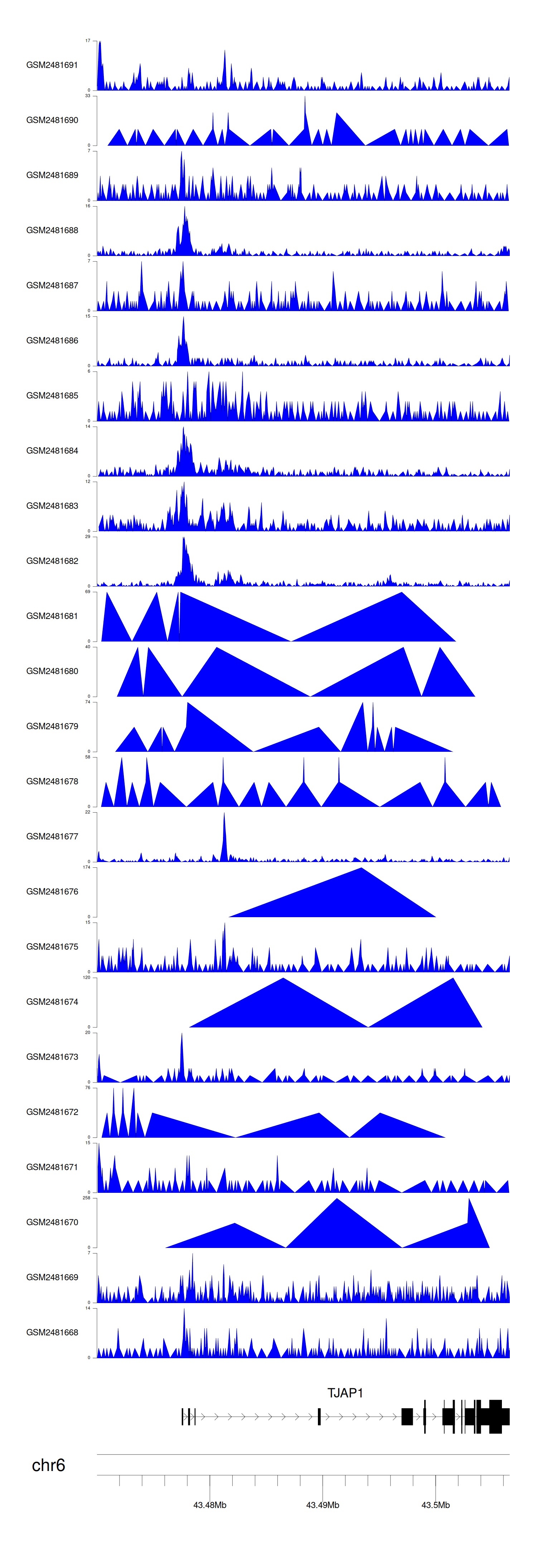 > Dataset: GSE94732 - TJAP1 peak across samples