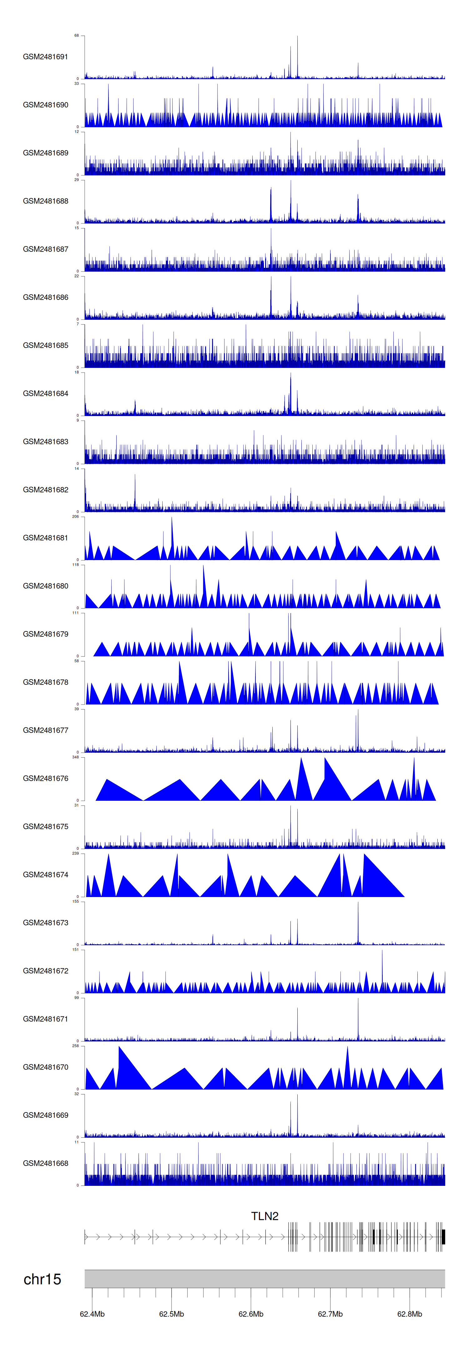 > Dataset: GSE94732 - TLN2 peak across samples