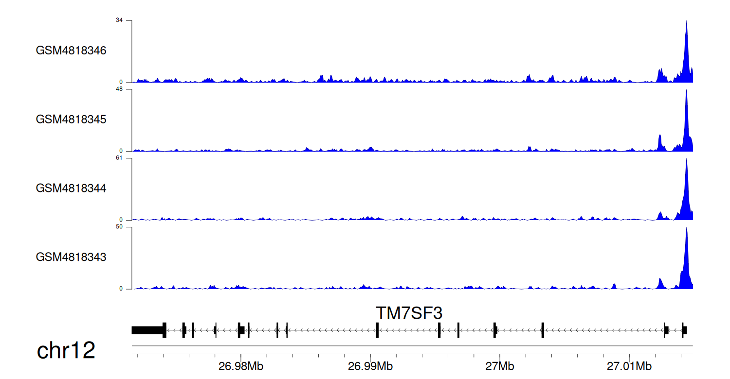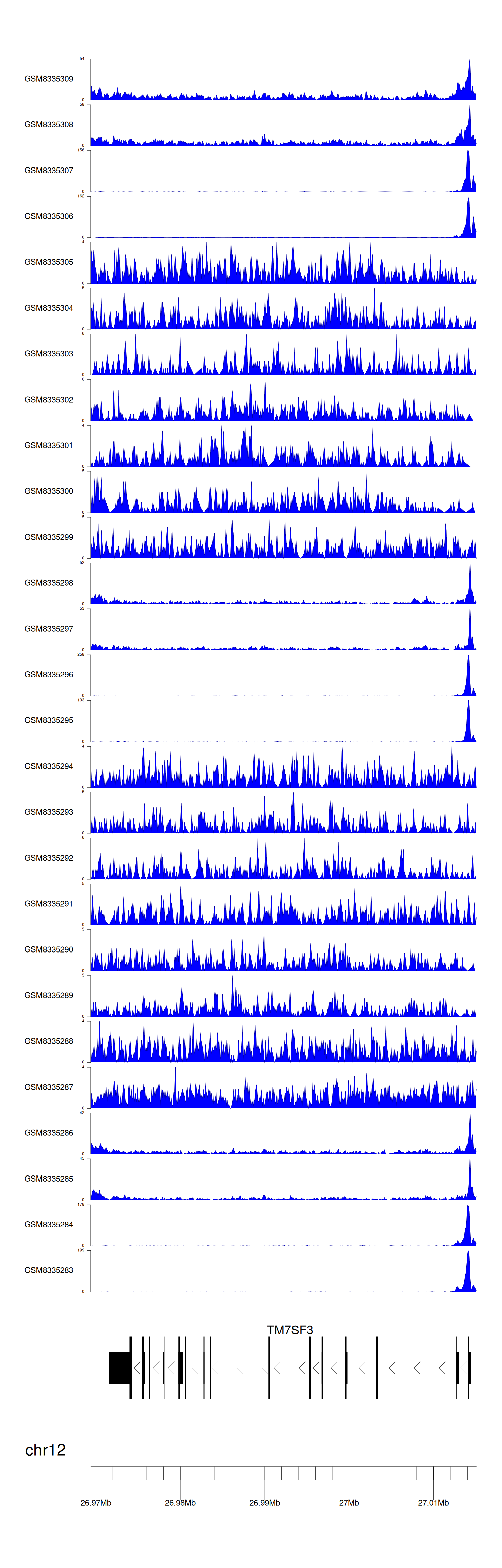 > Dataset: GSE270130 - TM7SF3 peak across samples