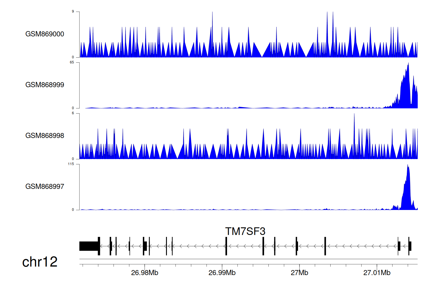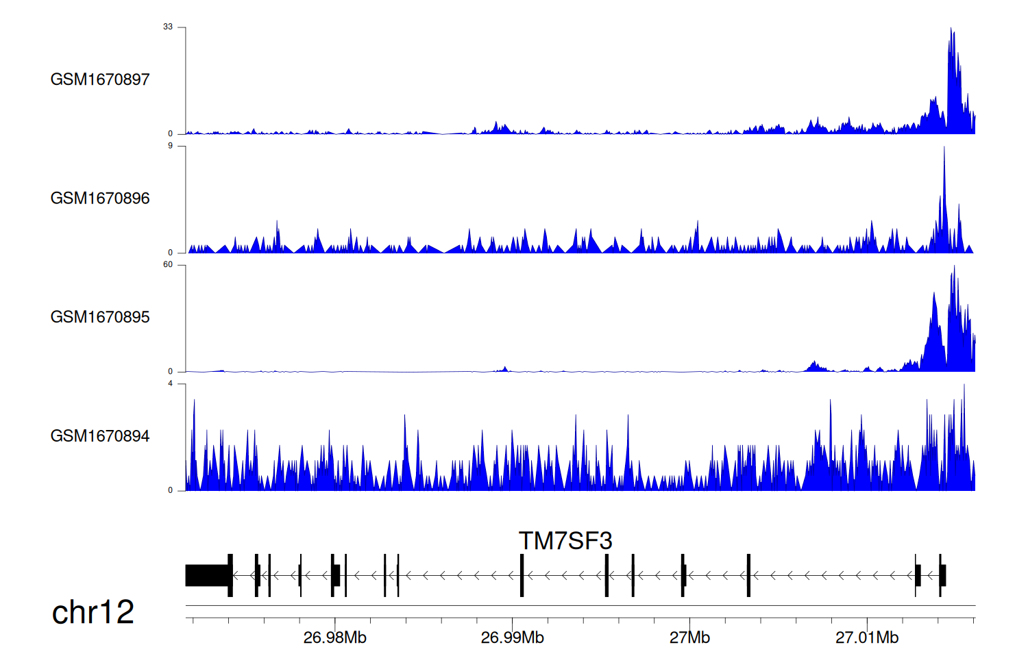 > Dataset: GSE68402 - TM7SF3 peak across samples