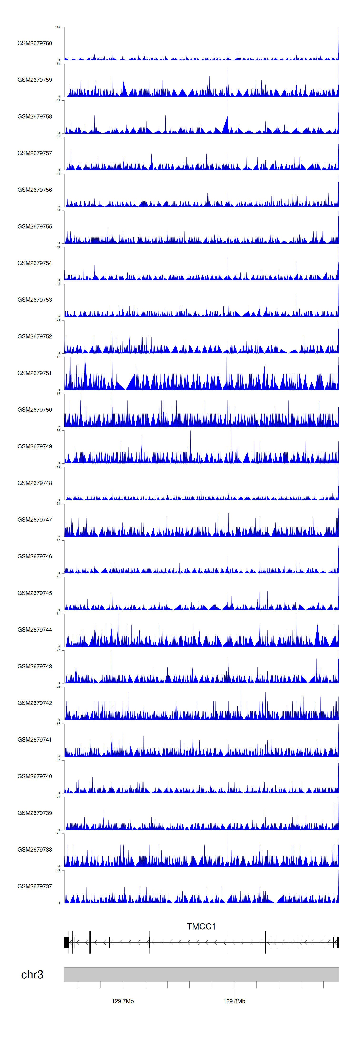 > Dataset: GSE100376 - TMCC1 peak across samples