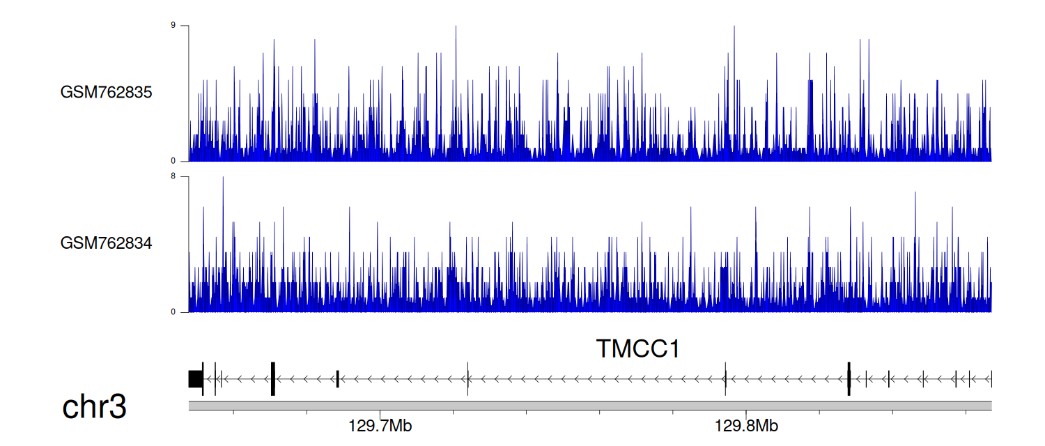 > Dataset: GSE30738 - TMCC1 peak across samples