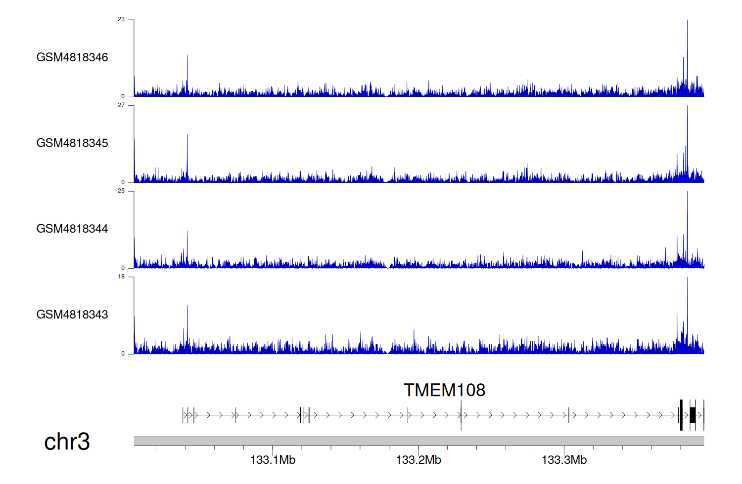 > Dataset: GSE270130 - TMEM108 peak across samples