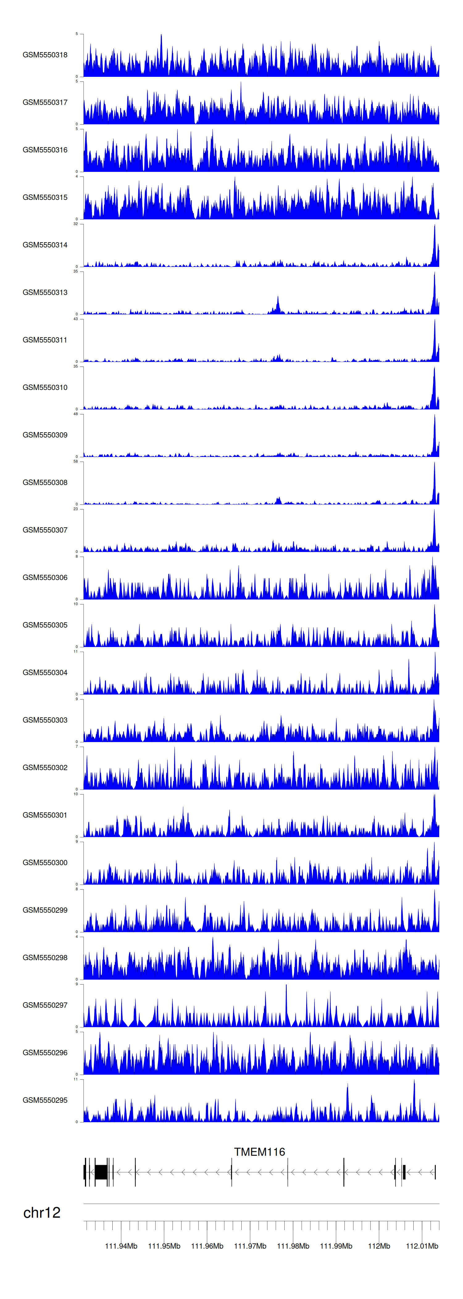 > Dataset: GSE143026 - TMEM116 peak across samples