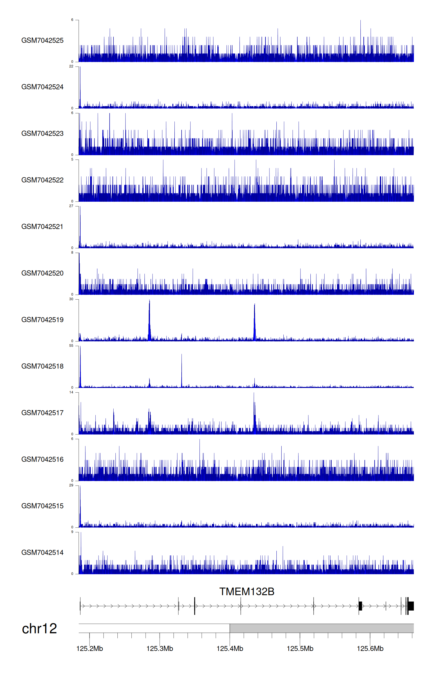 > Dataset: GSE246060 - TMEM132B peak across samples