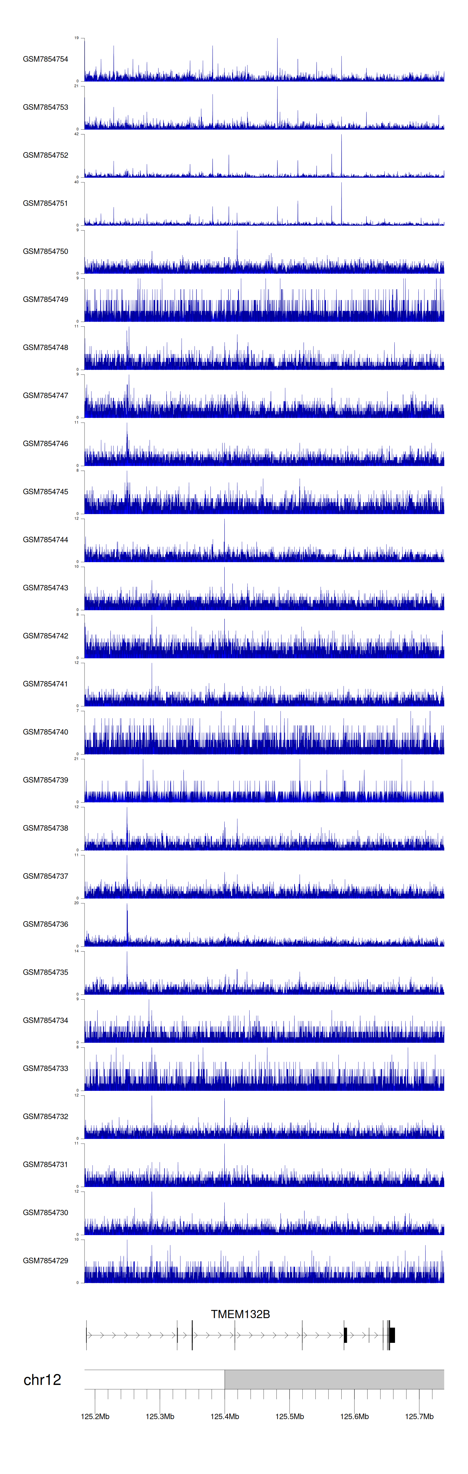 > Dataset: GSE198334 - TMEM132B peak across samples