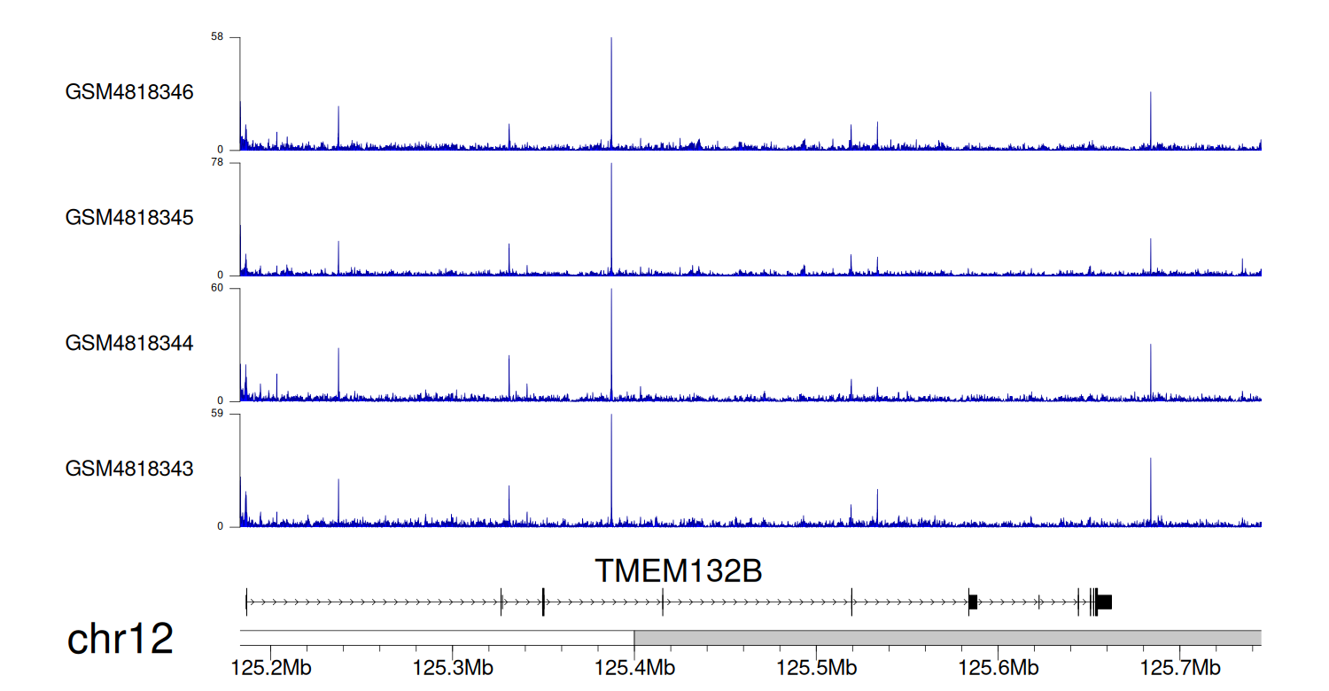 > Dataset: GSE270130 - TMEM132B peak across samples