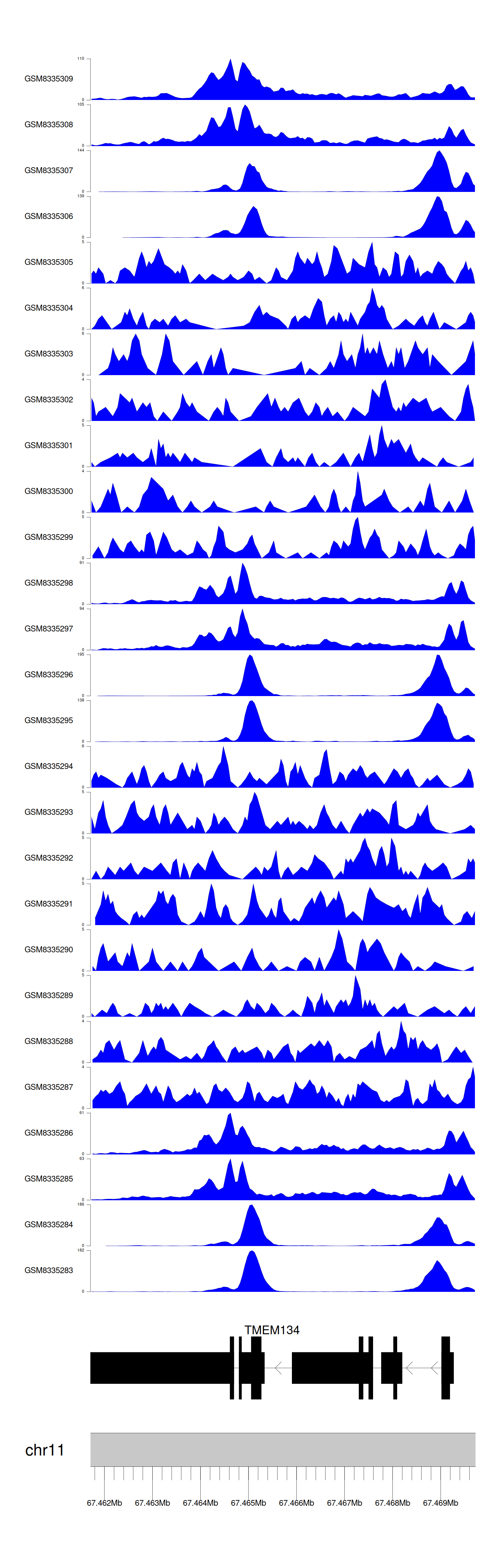 > Dataset: GSE270130 - TMEM134 peak across samples