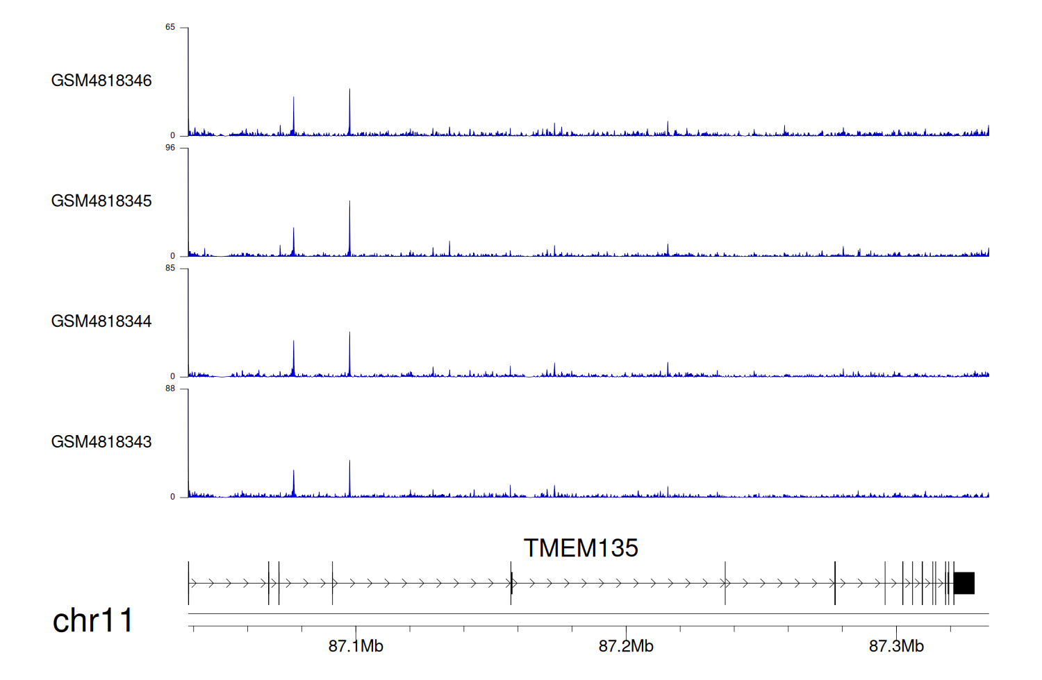 > Dataset: GSE270130 - TMEM135 peak across samples