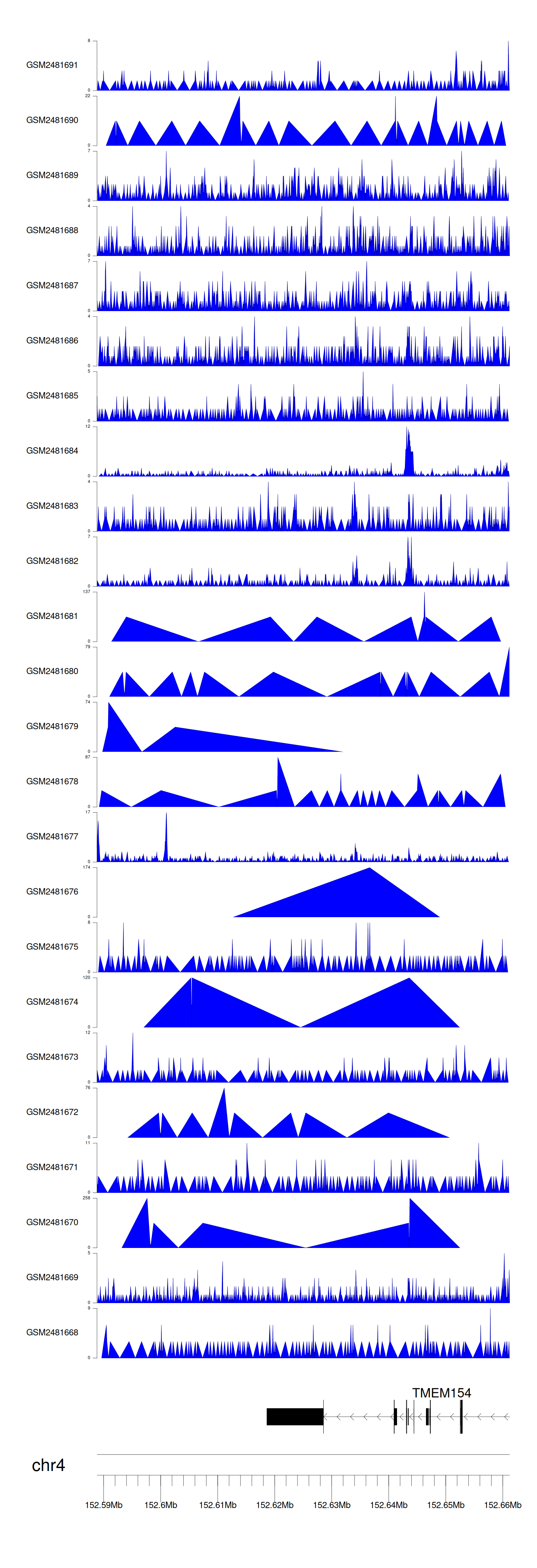 > Dataset: GSE94732 - TMEM154 peak across samples