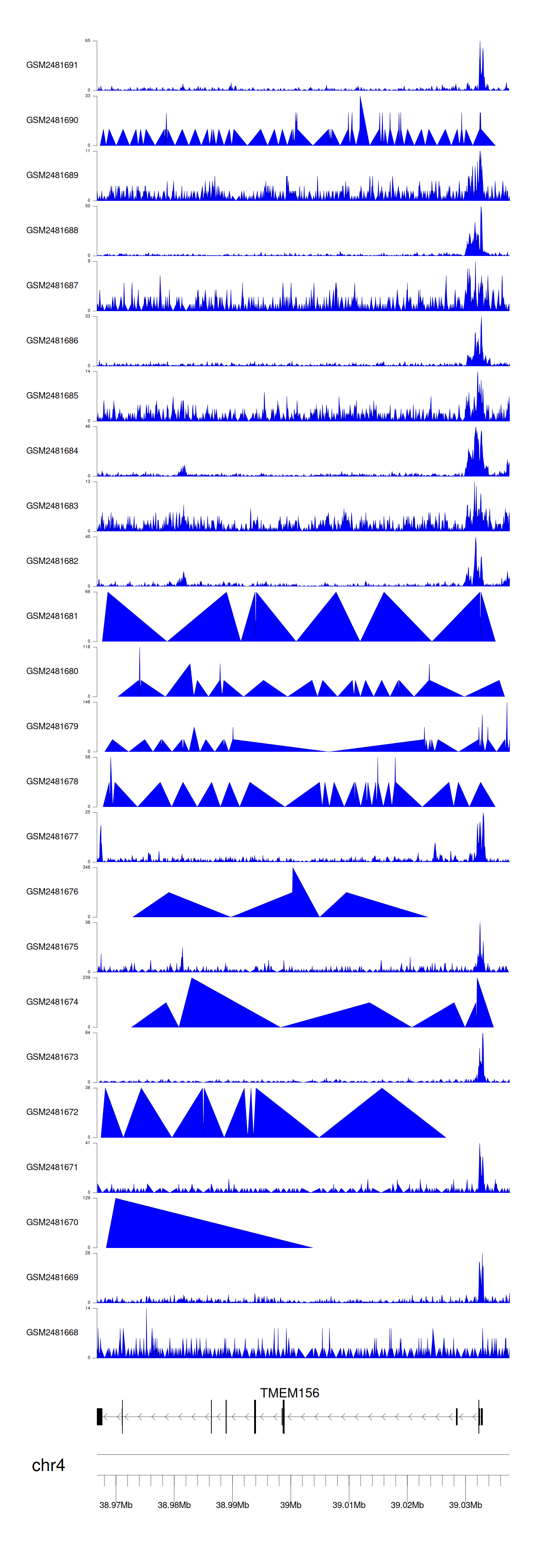 > Dataset: GSE94732 - TMEM156 peak across samples