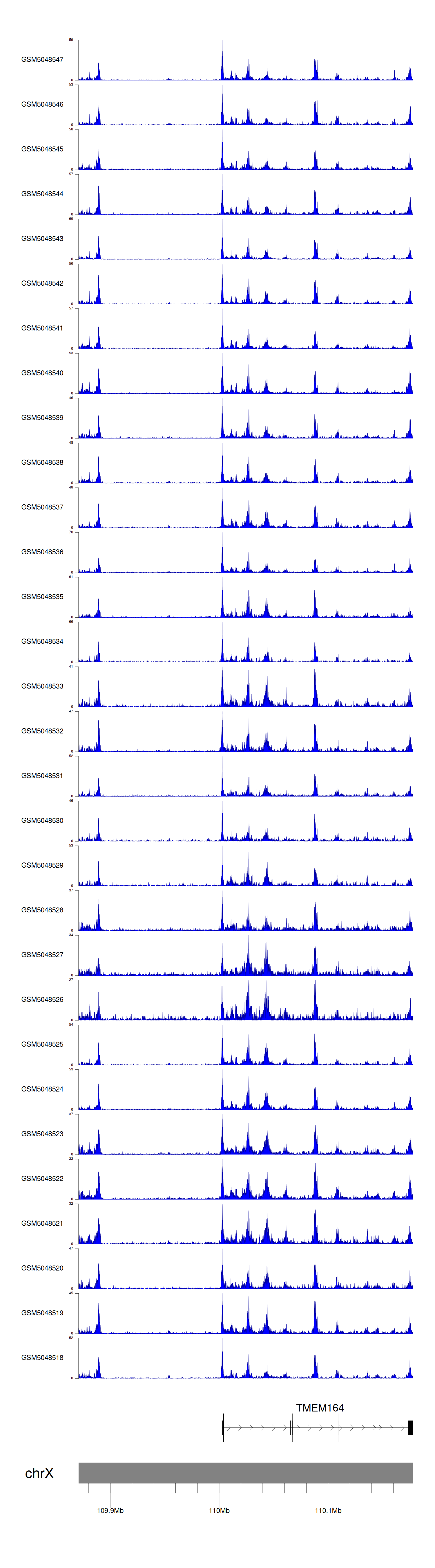> Dataset: GSE100376 - TMEM164 peak across samples