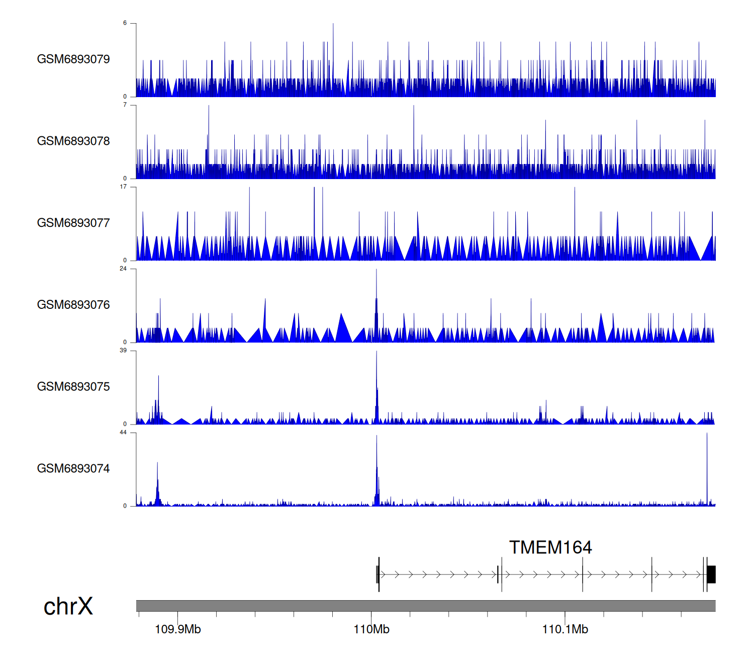 > Dataset: GSE211651 - TMEM164 peak across samples