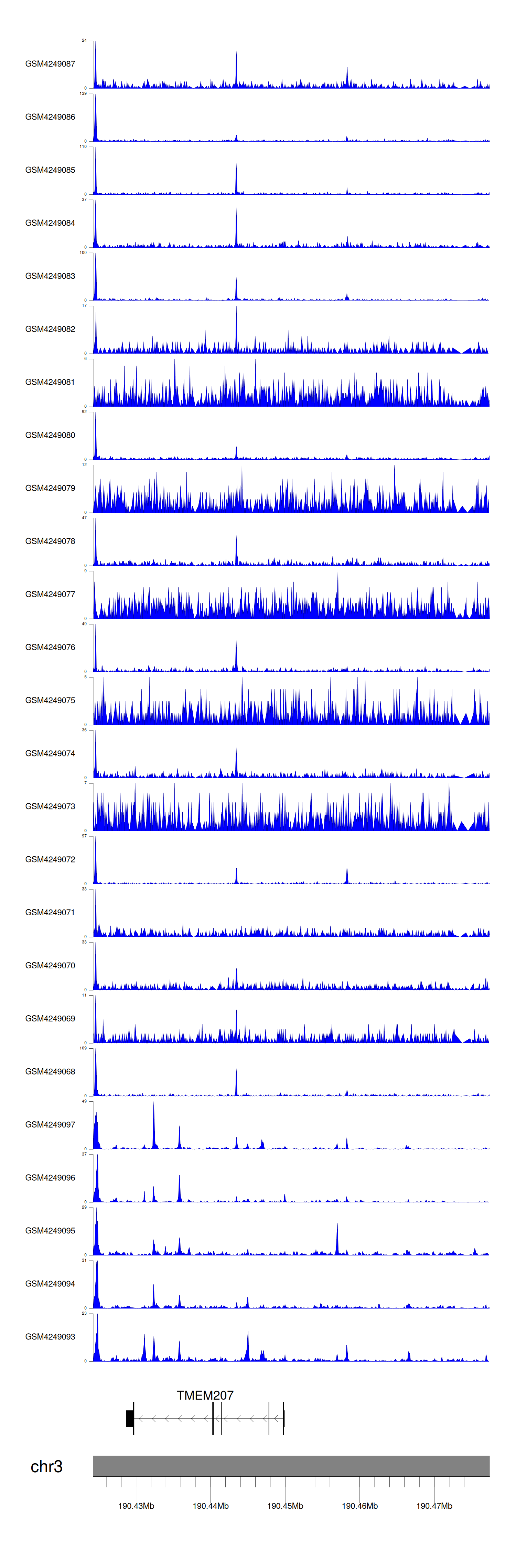 > Dataset: GSE143026 - TMEM207 peak across samples