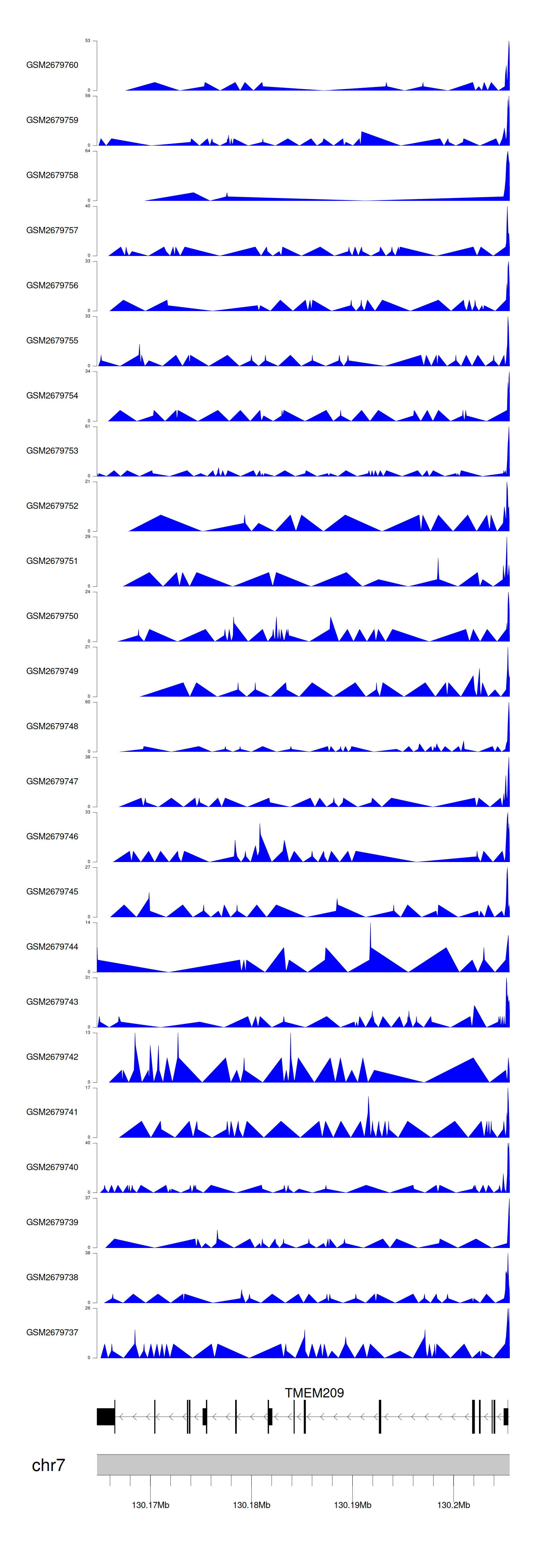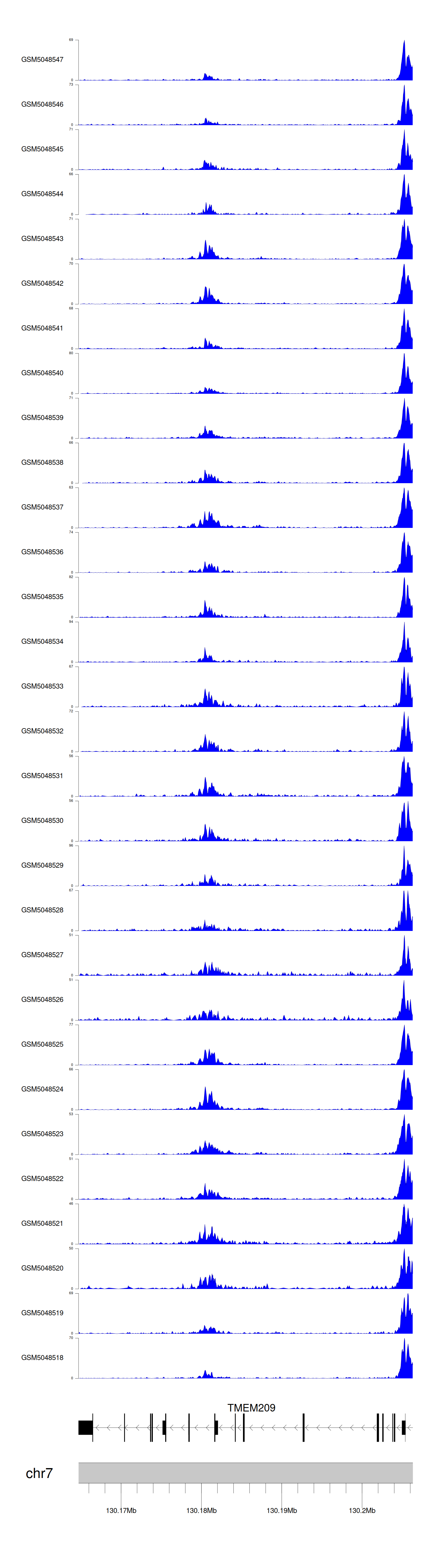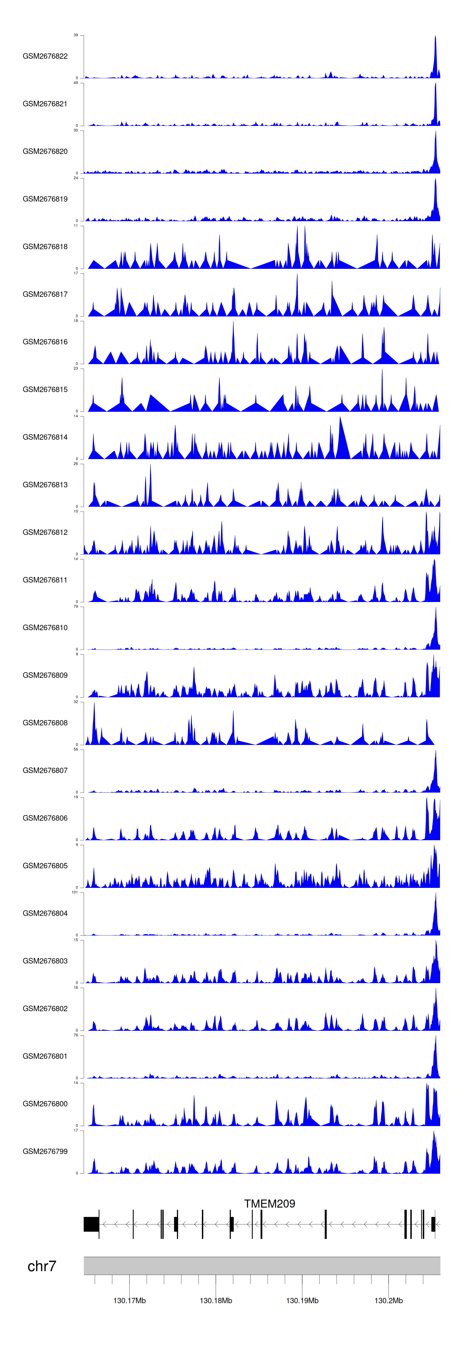 > Dataset: GSE100376 - TMEM209 peak across samples