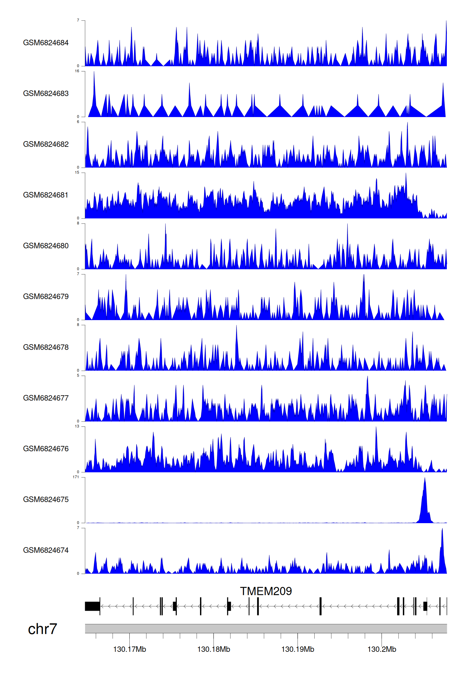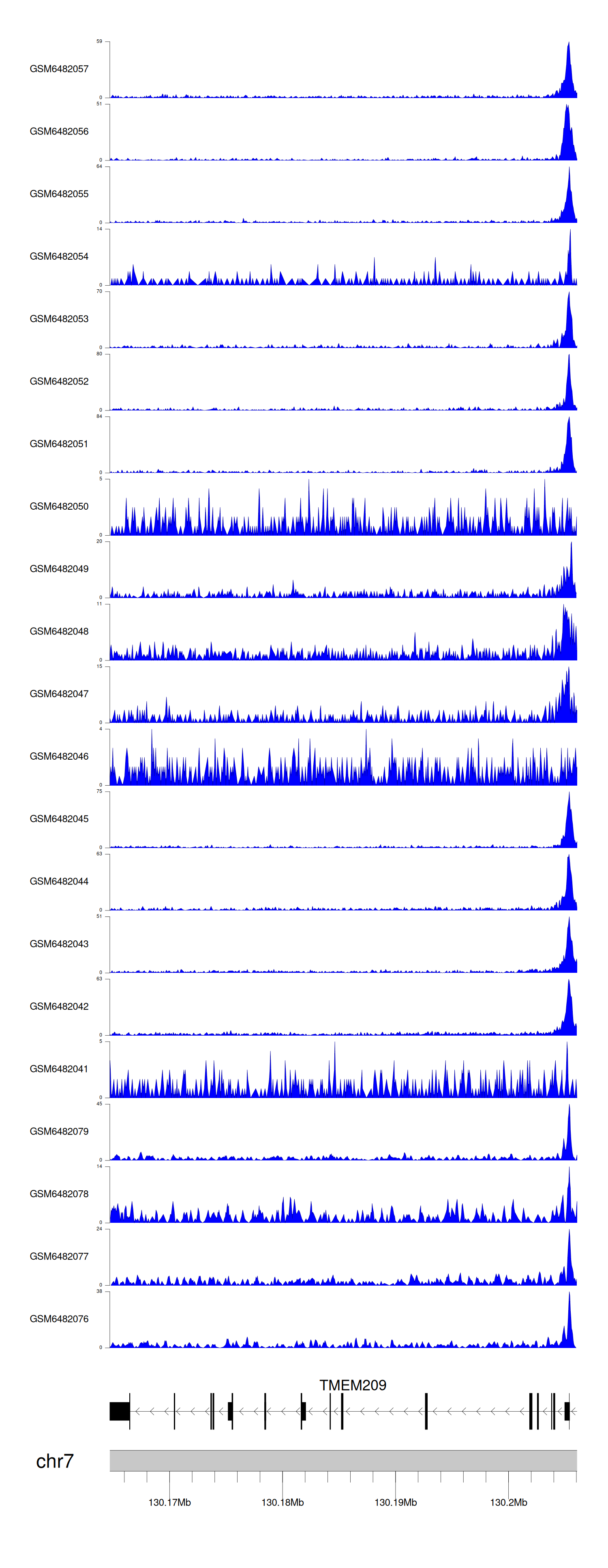 > Dataset: GSE165705 - TMEM209 peak across samples