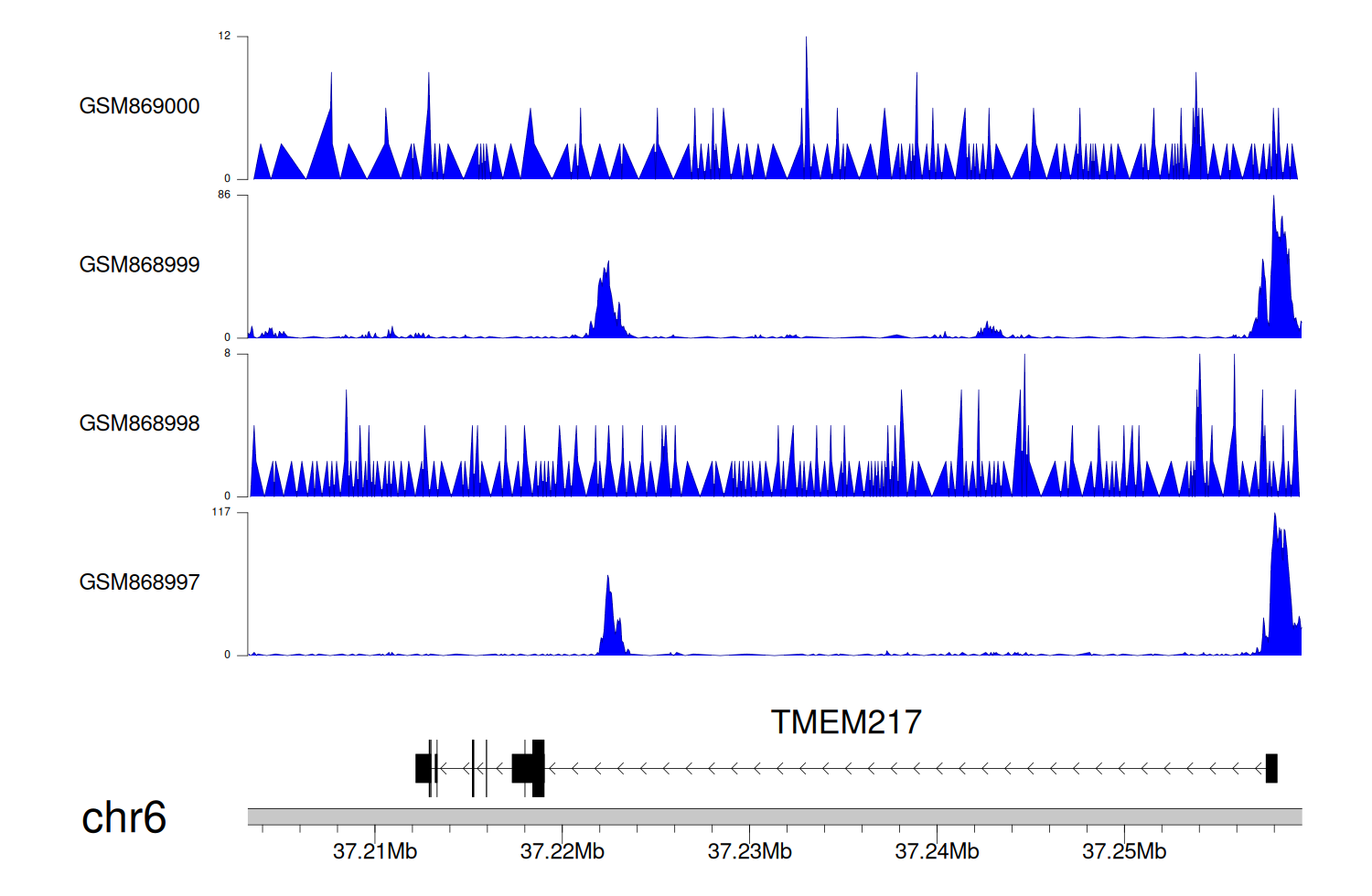 > Dataset: GSE68402 - TMEM217 peak across samples