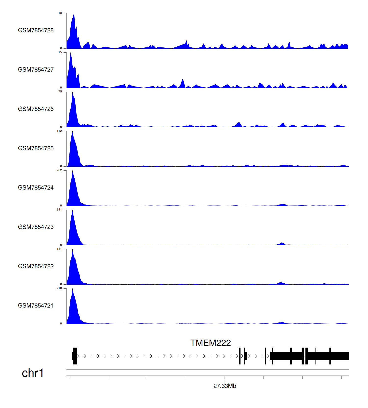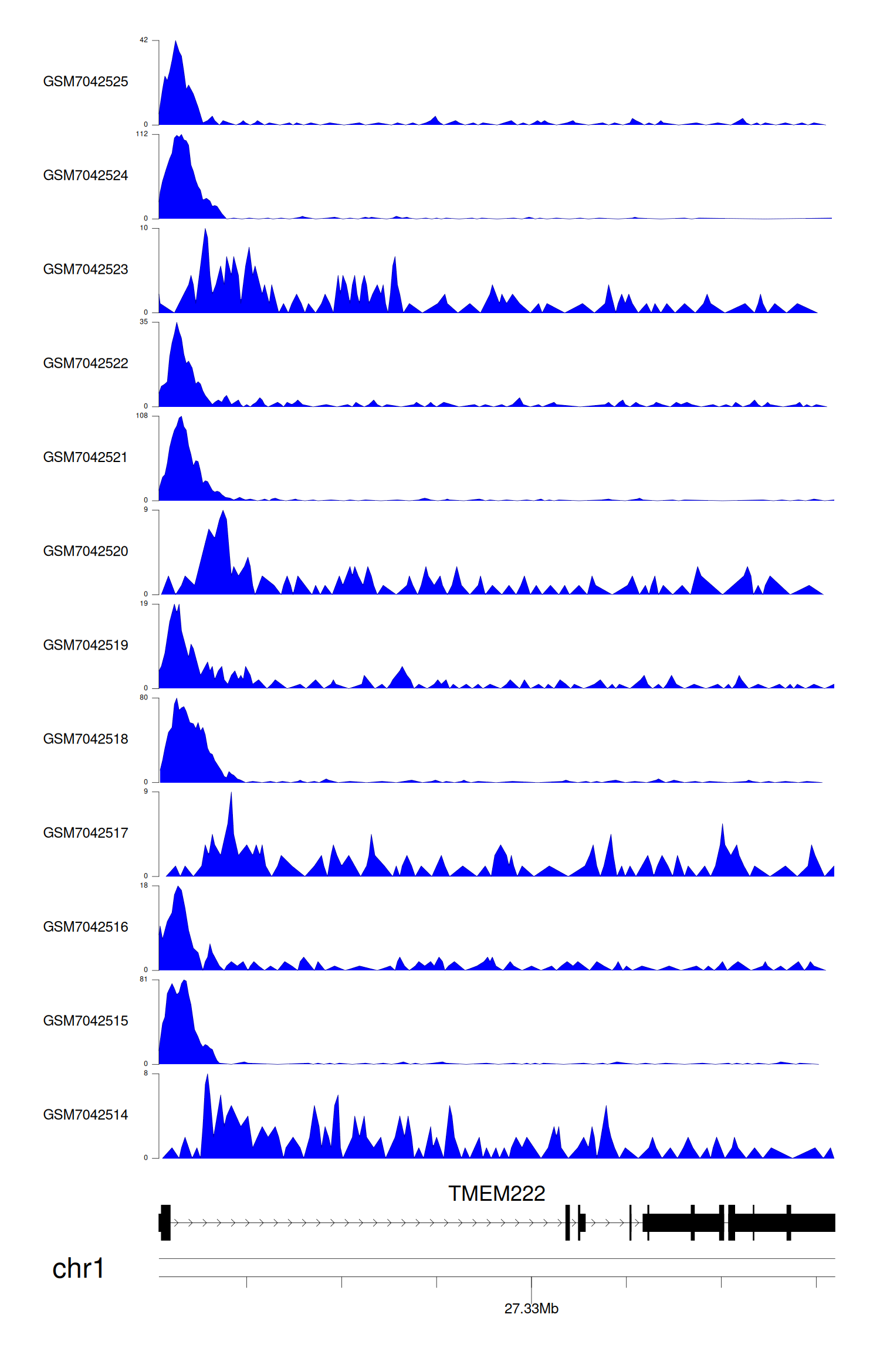 > Dataset: GSE225248 - TMEM222 peak across samples