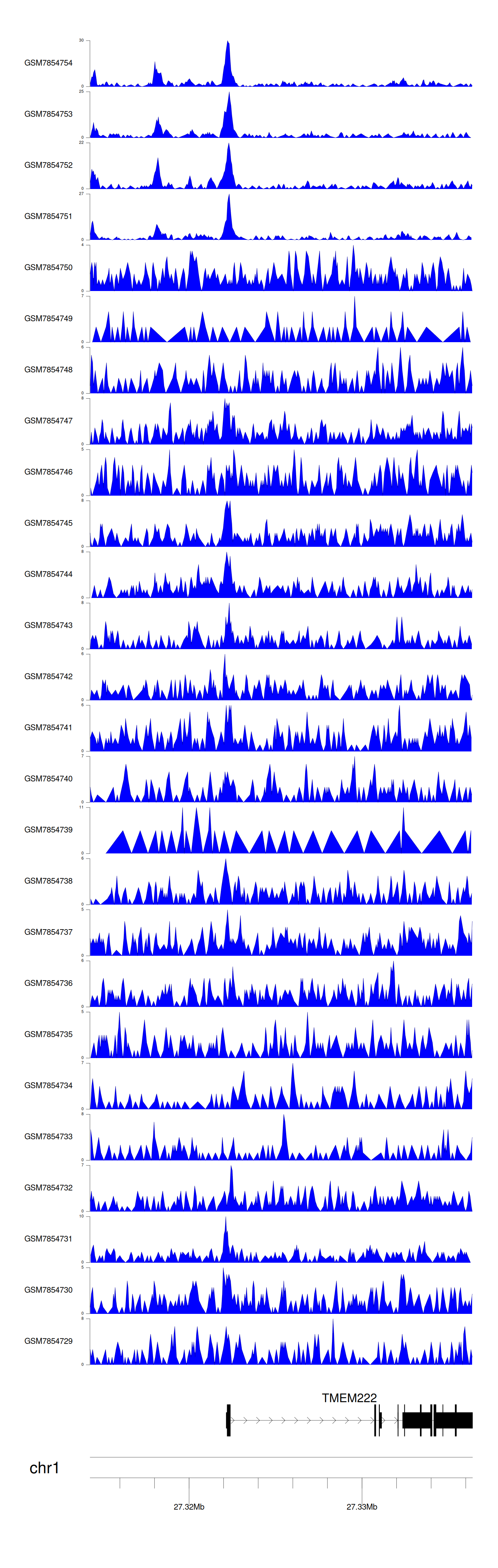 > Dataset: GSE198334 - TMEM222 peak across samples