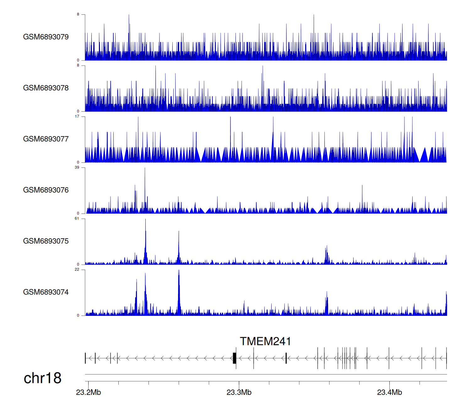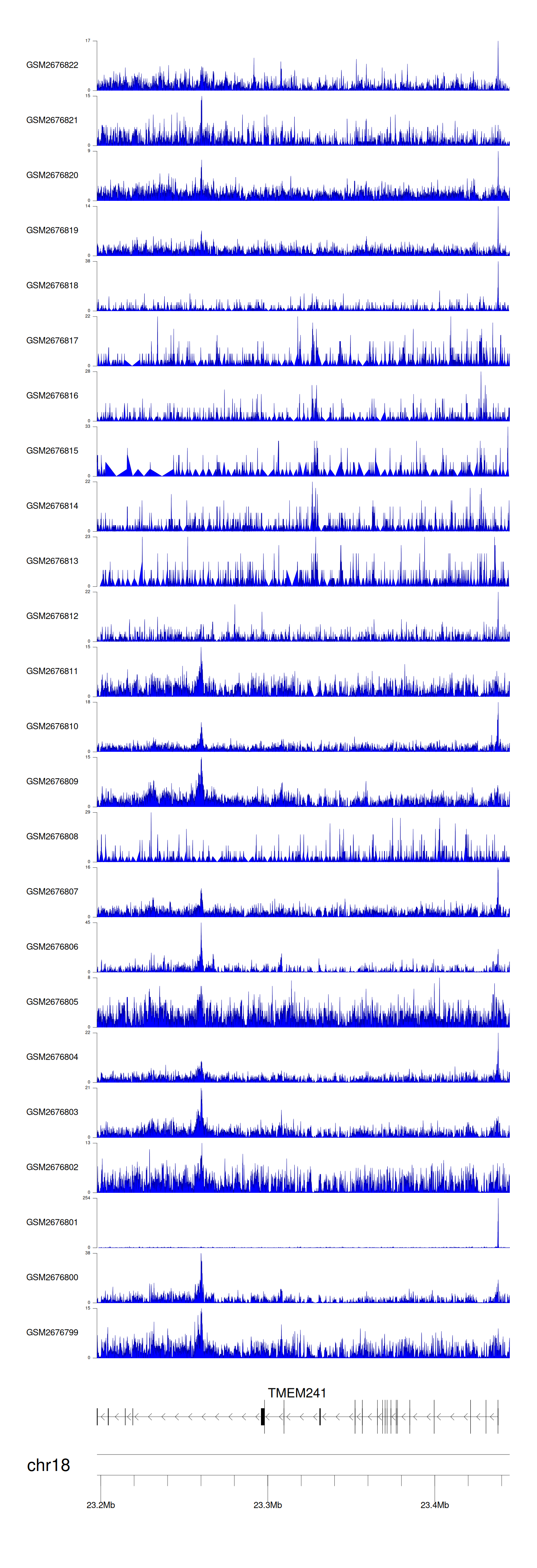 > Dataset: GSE211651 - TMEM241 peak across samples