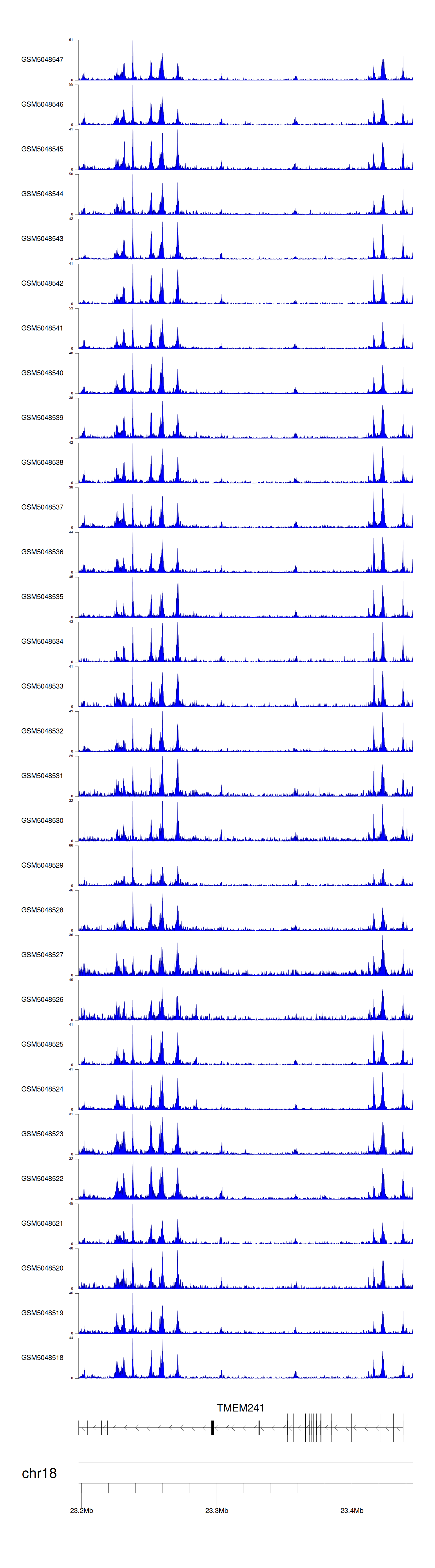 > Dataset: GSE30738 - TMEM241 peak across samples
