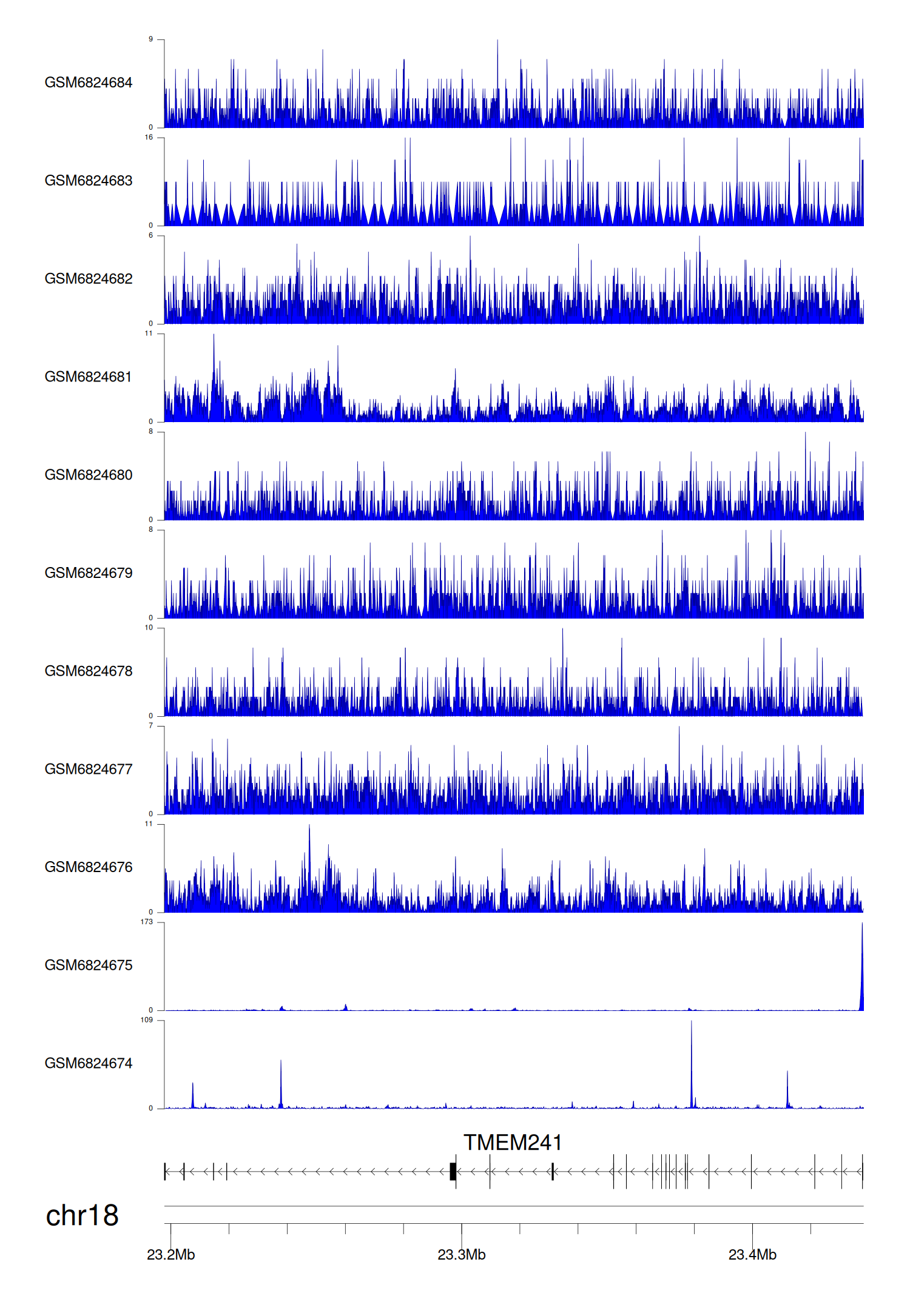 > Dataset: GSE221688 - TMEM241 peak across samples