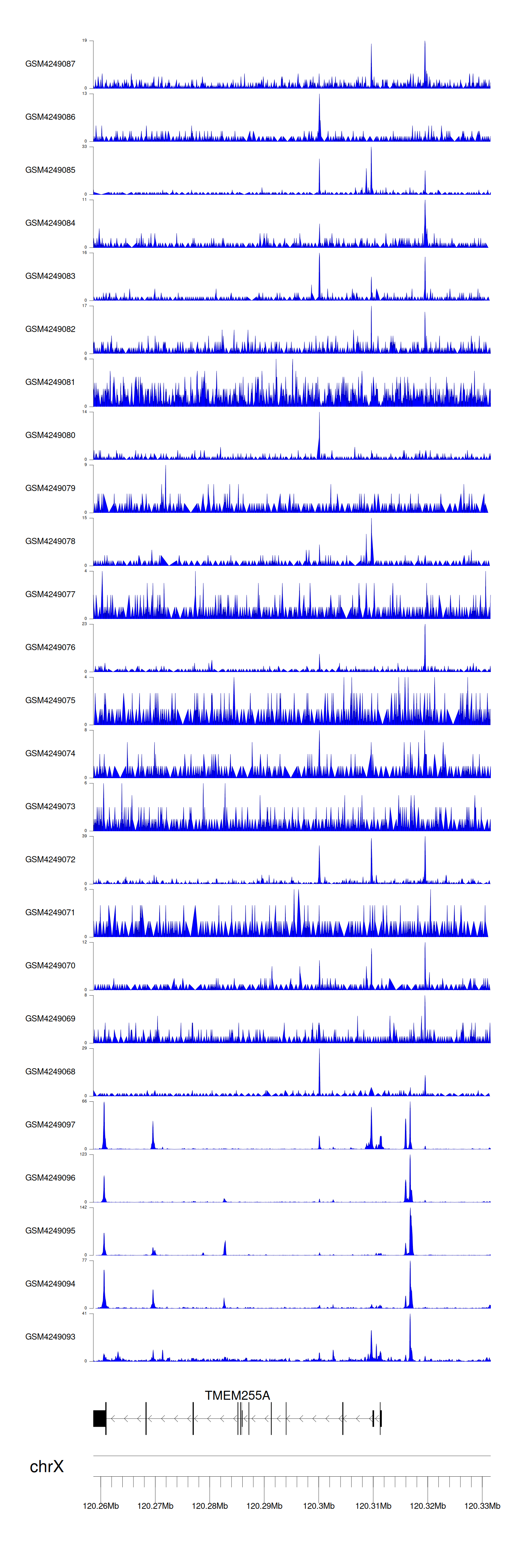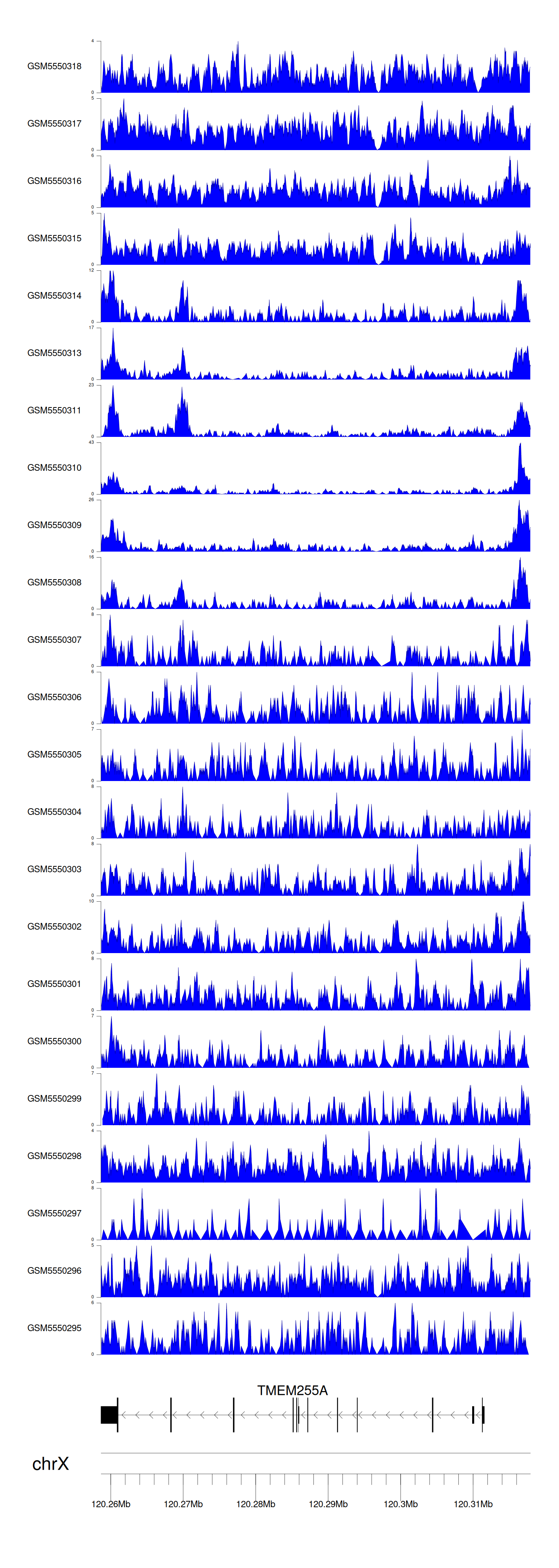 > Dataset: GSE143026 - TMEM255A peak across samples