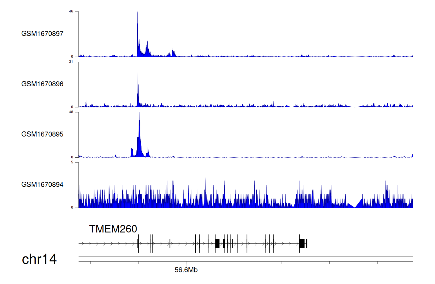 > Dataset: GSE68402 - TMEM260 peak across samples