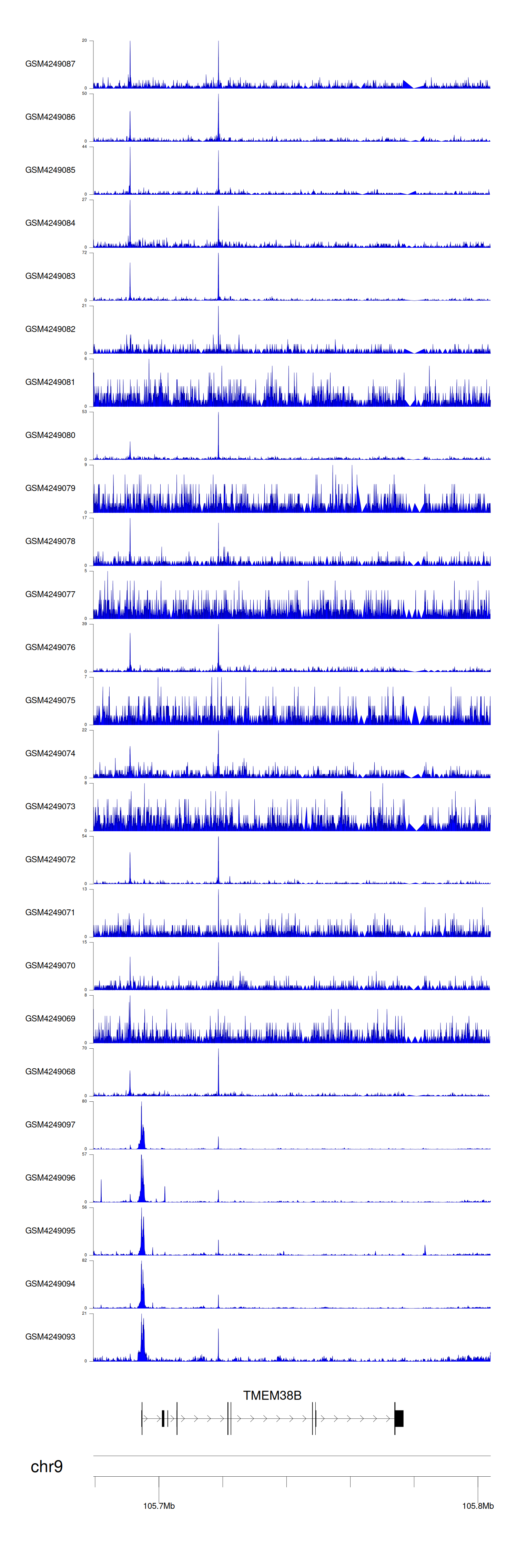 > Dataset: GSE143026 - TMEM38B peak across samples