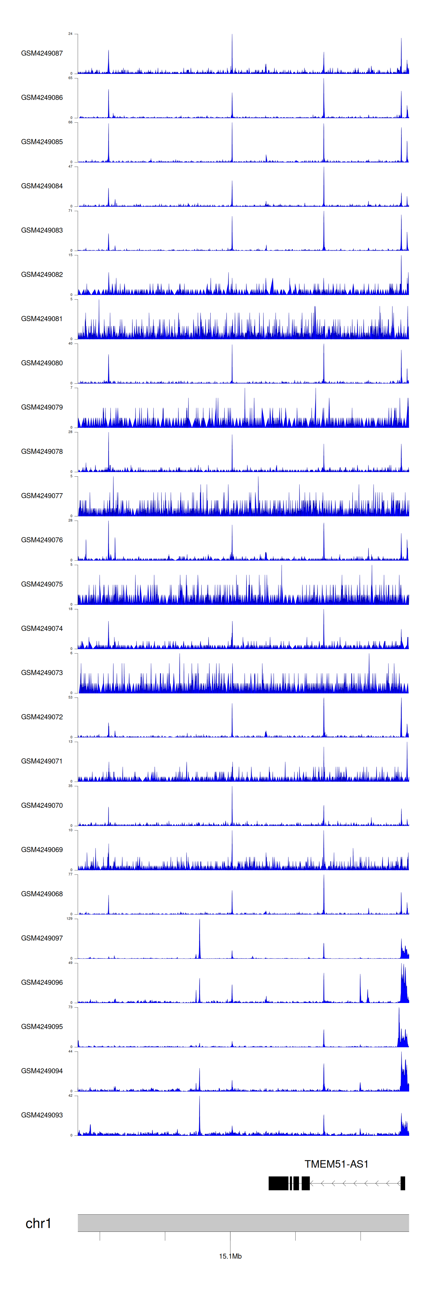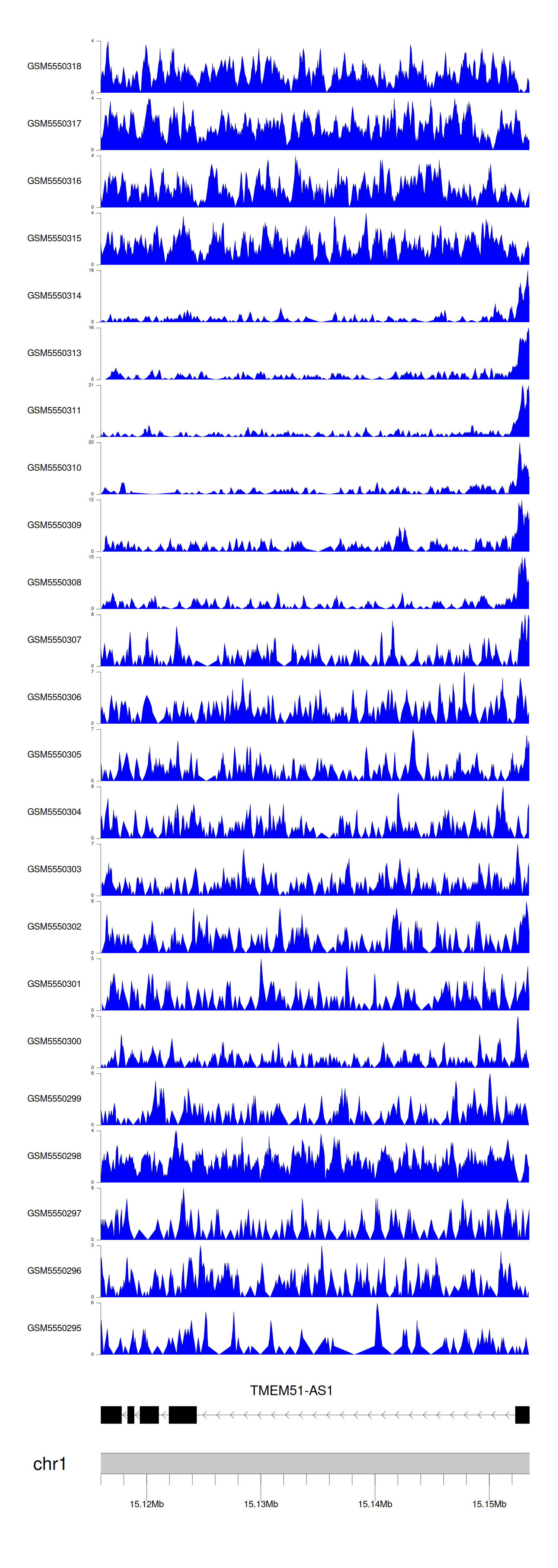 > Dataset: GSE143026 - TMEM51-AS1 peak across samples