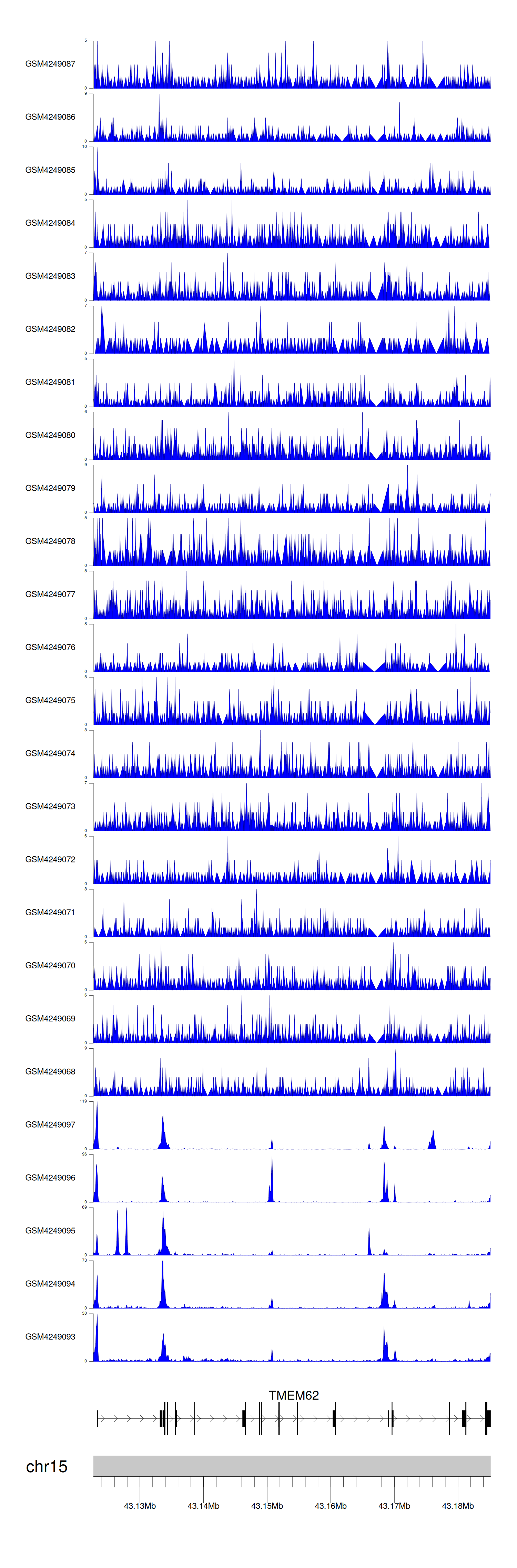 > Dataset: GSE143026 - TMEM62 peak across samples